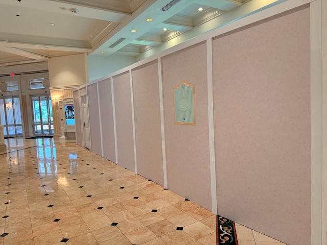 Last month, Disney announced the lobby renovation for the resort, ultimately adding a brand new Lobby Bar, along with a visual update to the entire area, including the lobby, staircase and front desk. Other areas around the lobby are also walled off at this time, including part of the check-in area and the old bar area at the back of the lobby.