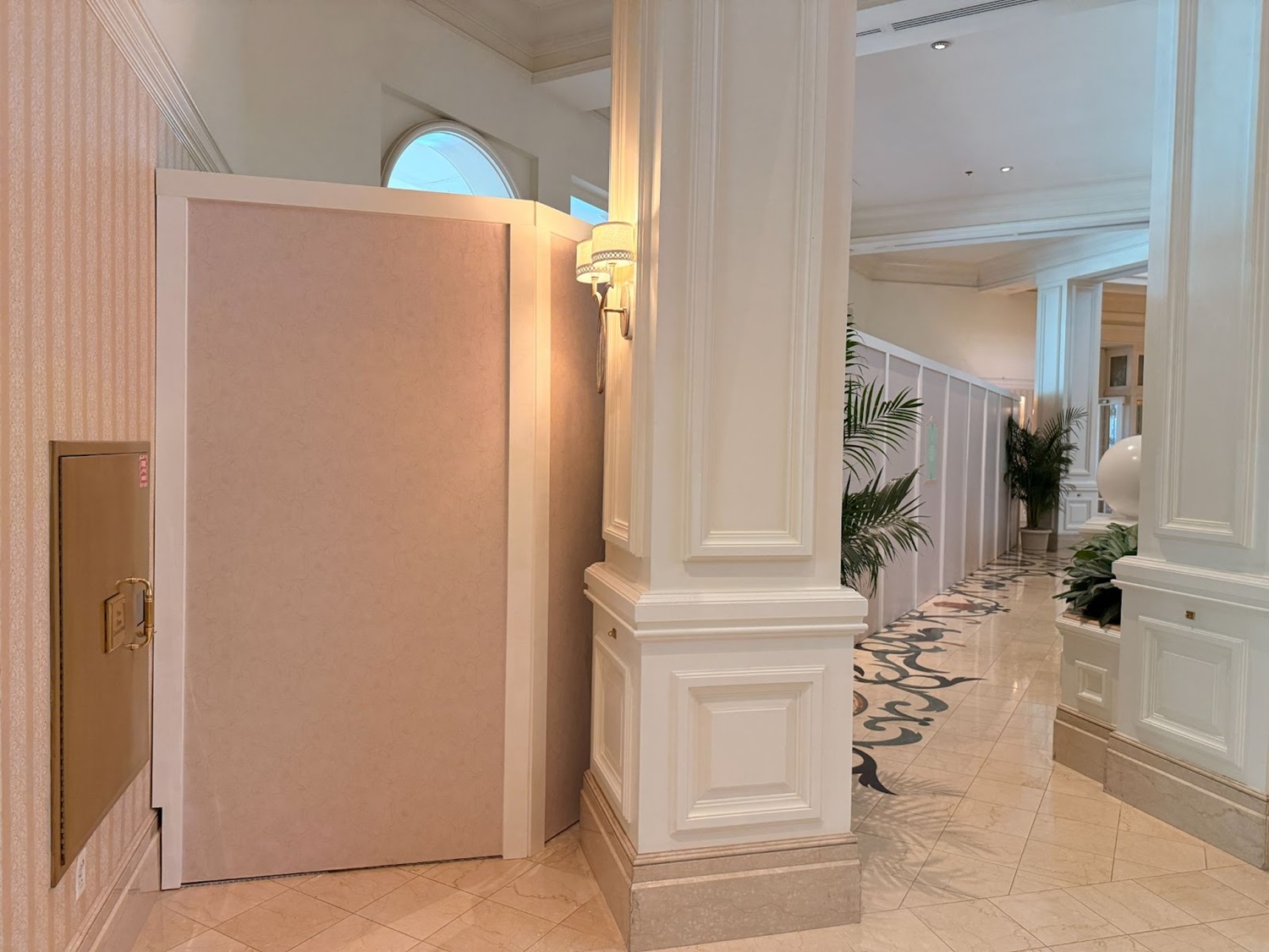 The walls have necessitated the moving of check-in to a more central location in the big atrium.