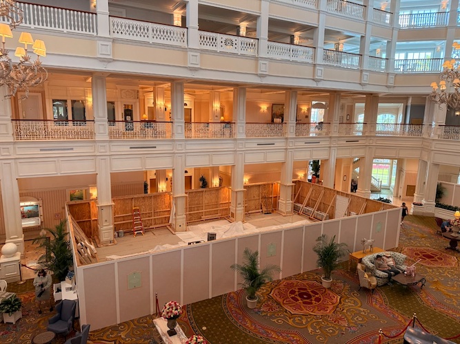 Let’s take a look at the latest construction progress on the lobby of Disney’s Grand Floridian Resort and Spa at Walt Disney World, which is in the process of receiving a somewhat controversial makeover.