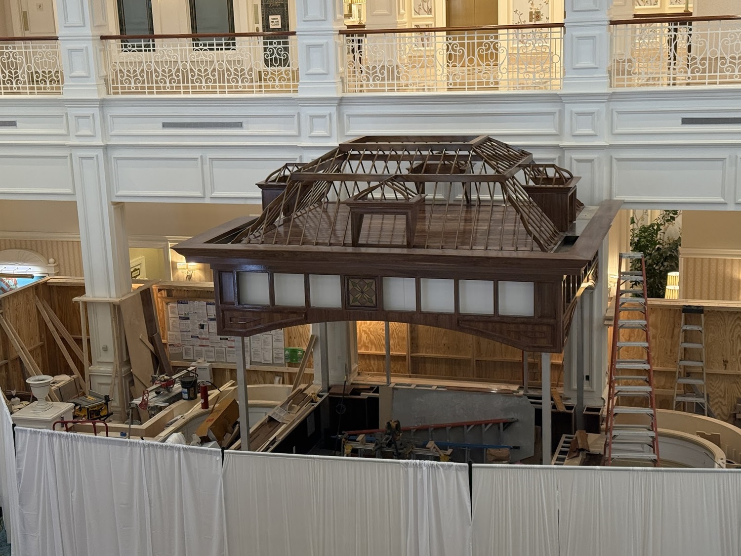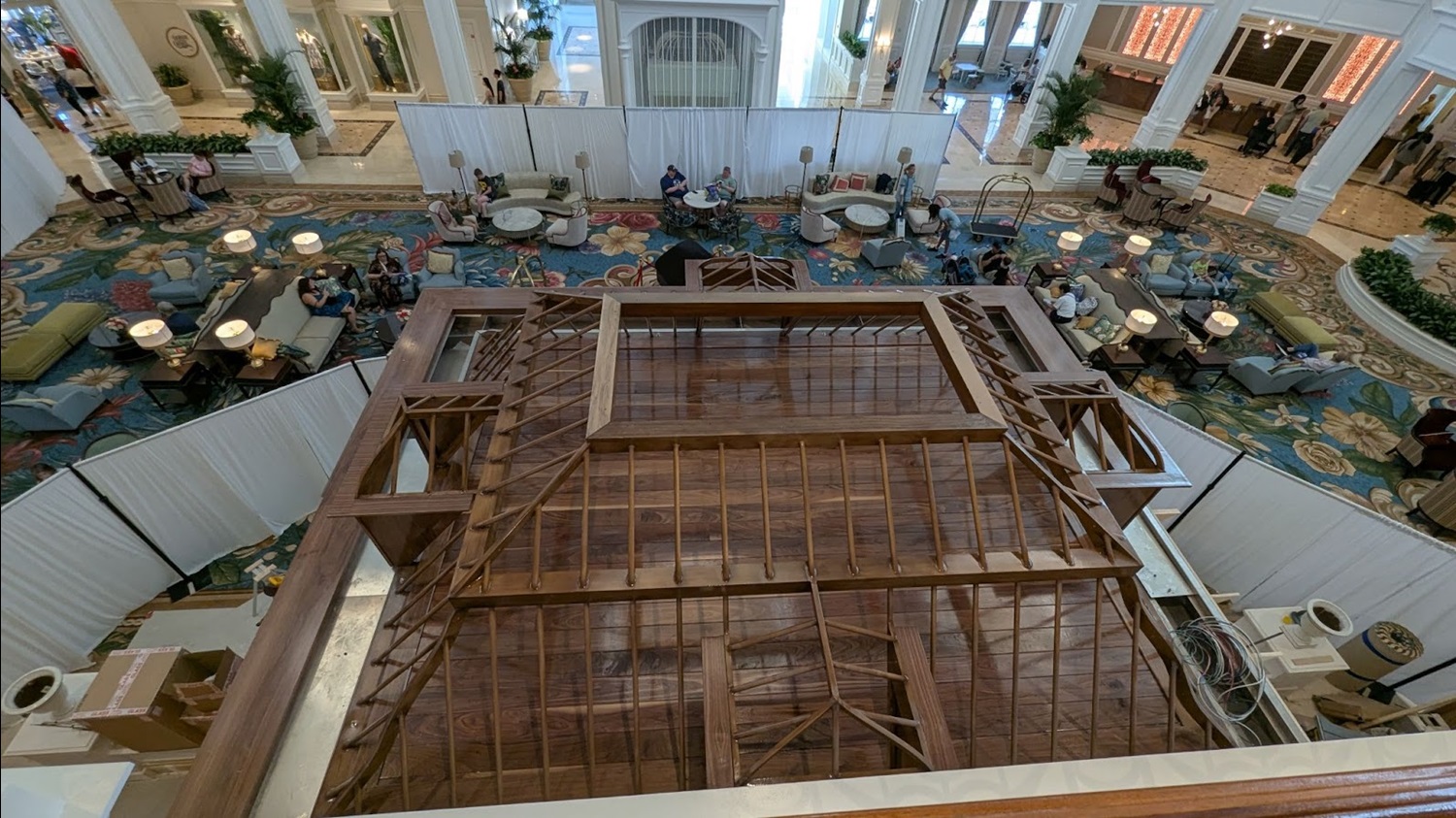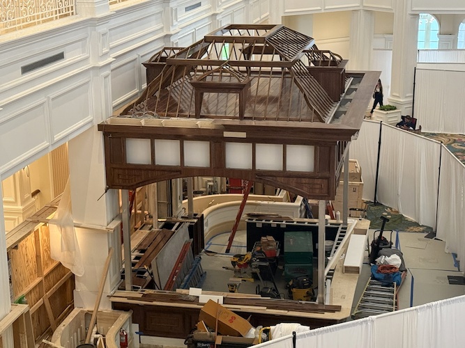 Speaking of lounge, work continues in the area on a new bar space coming to the lobby floor, paying homage in design and aesthetic to the landmark birdcage that it is replacing in this main building of the resort.