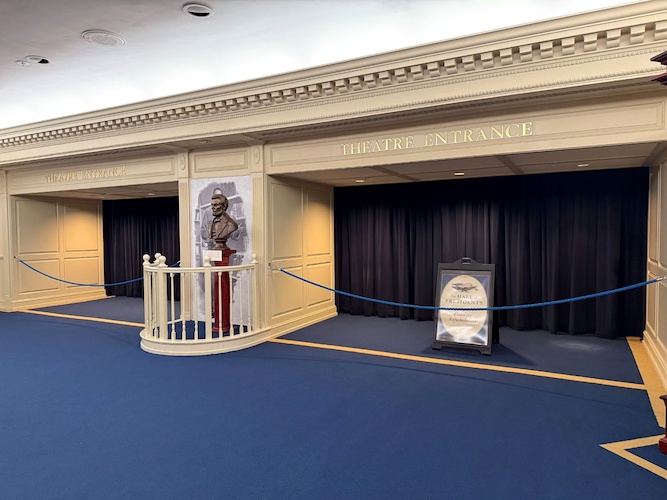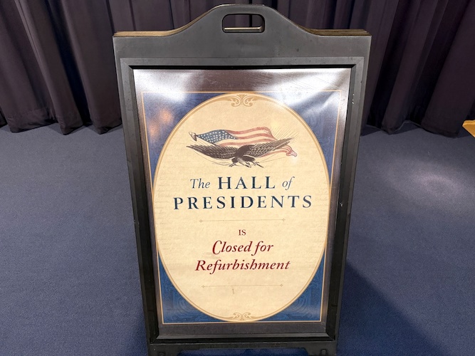 Ropes are up blocking access to the theater, with signage nearby indicating that it is still closed for refurbishment. At this time, it’s unconfirmed whether Disney will simply use the prior version of the show that ran during Trump’s first term, or if a new version will be created.