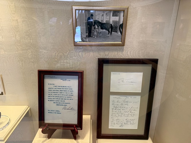 A photo of President John F. Kennedy with his children and a horse outside the White House has also been added, alongside a letter from President Harry S. Truman to his wife, Bess.