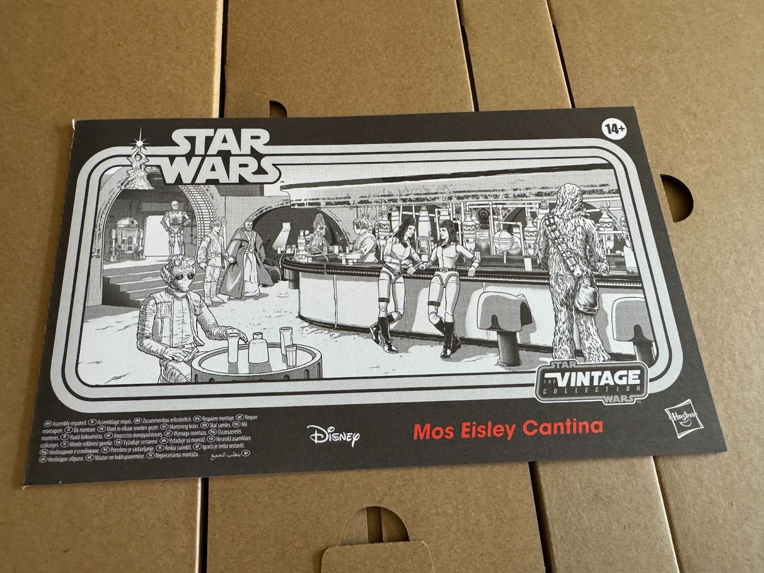 - I also personally backed the Mos Eisley Cantina project last summer and received my playset in the mail a couple of weeks ago. While I did open the box (and the smaller boxes inside) to take some photos, I have not yet managed to make the time or the space to assemble the Cantina itself.
