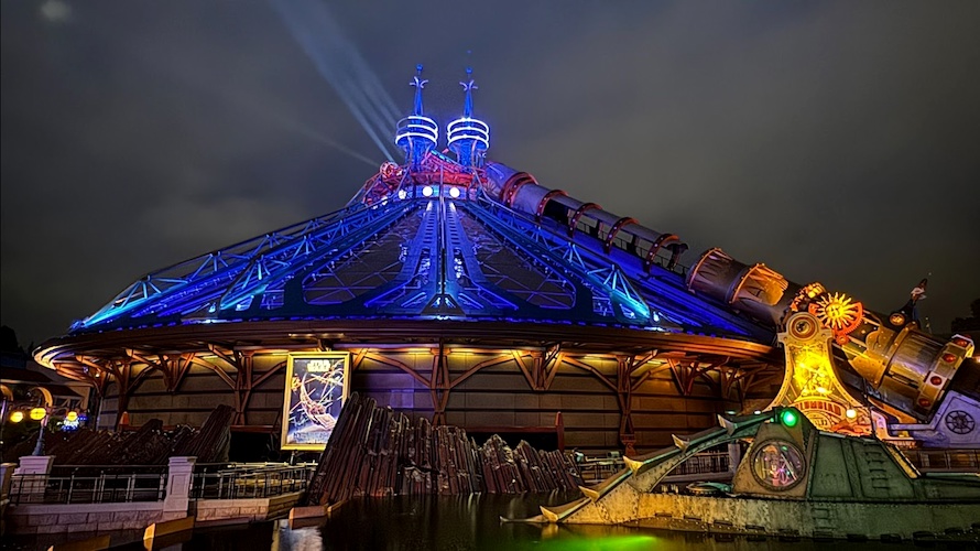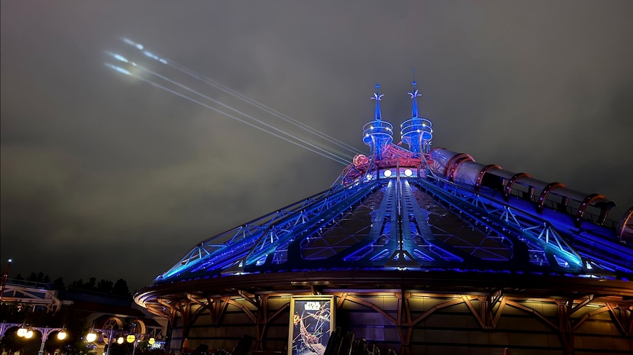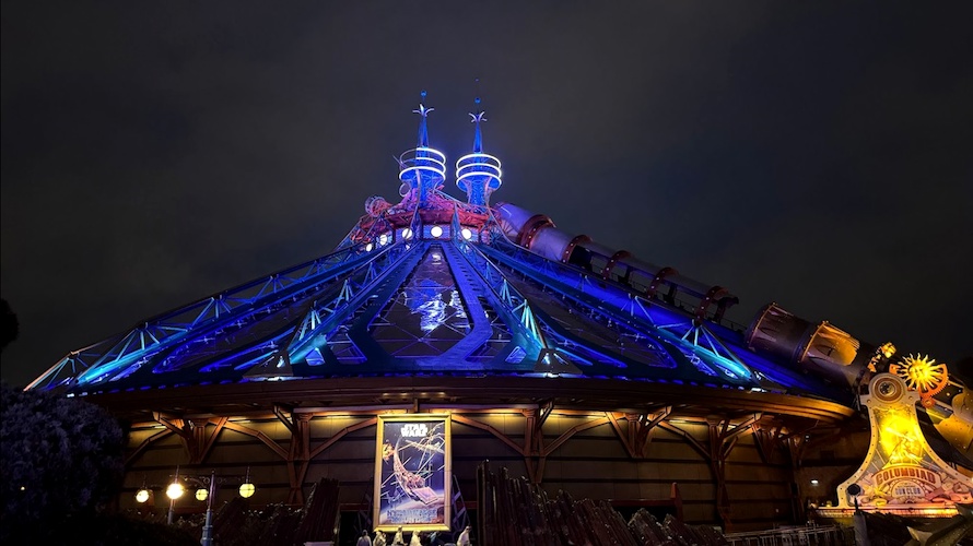 Star Wars: Hyperspace Mountain – or if you’re a longtime Disneyland Paris fan, Space Mountain: De la Terre à la Lune – has debuted stunning new nighttime lighting, breathing new life into the impressive structure.