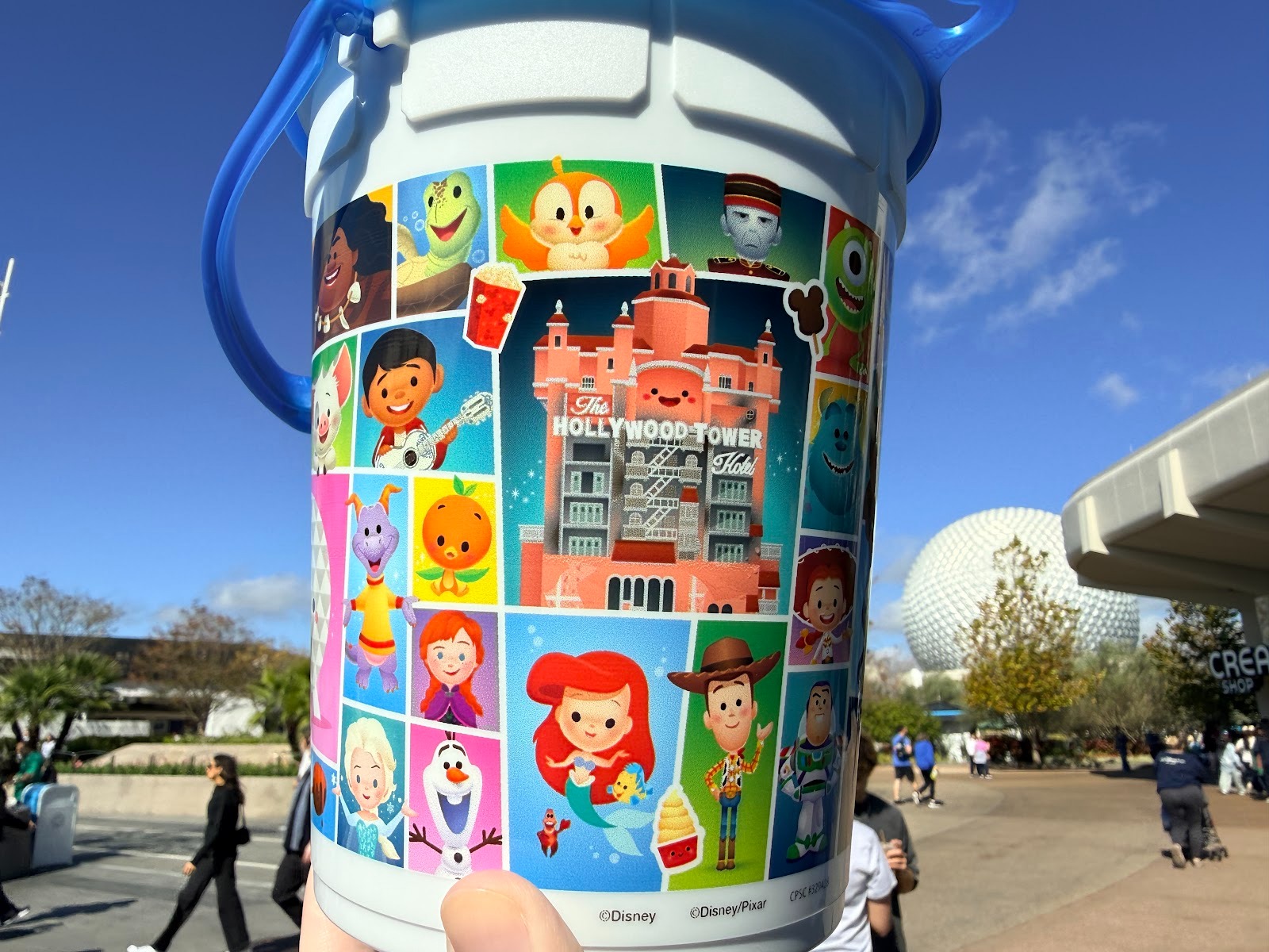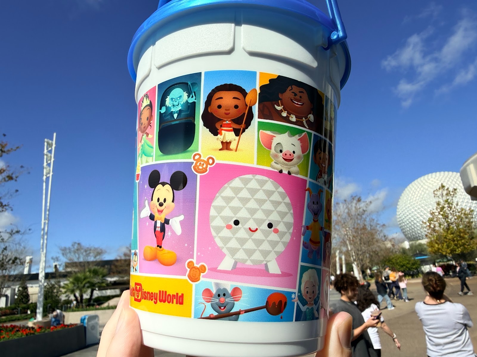 - We spotted the bucket at EPCOT, during the park’s International Festival of the Arts, featuring Maruyama’s work and style representing various attractions and characters.