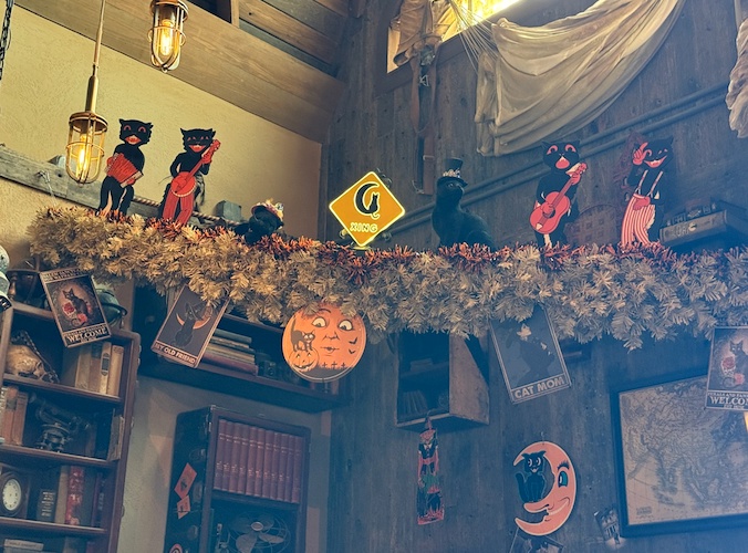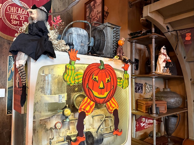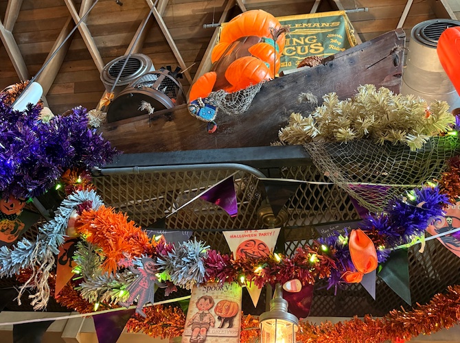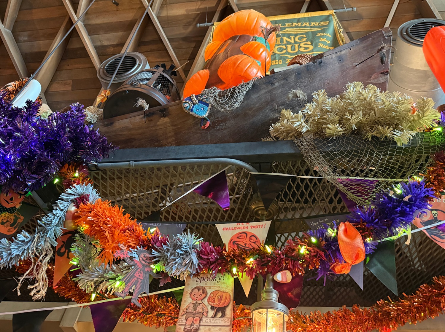 For the season, the bar has been fully decked out in Halloween regalia, with small spooky touches like pumpkins, jack-o-lanterns, ghosts, and more, all calling back to the 1930s/40s theme. Despite all the garland everywhere, this is different from the location’s traditional Christmas decor that occupies the space each holiday season.