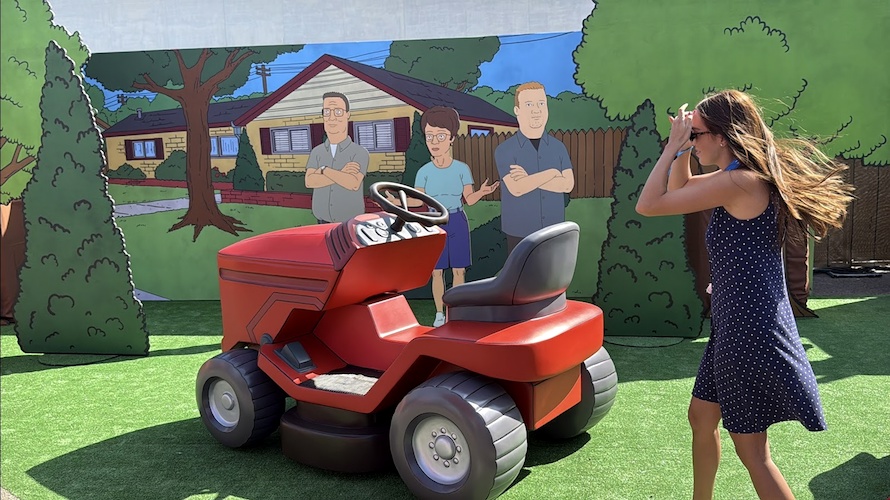 The special backyard bbq activation celebrates the 14th season of the hit series, returning to Hulu after airing on the Fox network where it ended back in 2009. According to the official synopsis for the new season, we see Hank and Peggy Hill return to a changed Arlen, Texas after working in Saudi Arabia for years at a propane job, earning their retirement nest egg. Having returned, they reconnected with old friends Dale, Boomhauer, and Bill, while Bobby is living his dream as a chef in Dallas and enjoying his 20s with his friends, Connie, Joseph, and Chane. As such, you’ll see cutouts of these characters scattered throughout the activation.