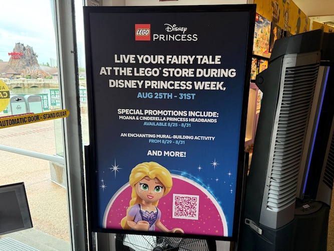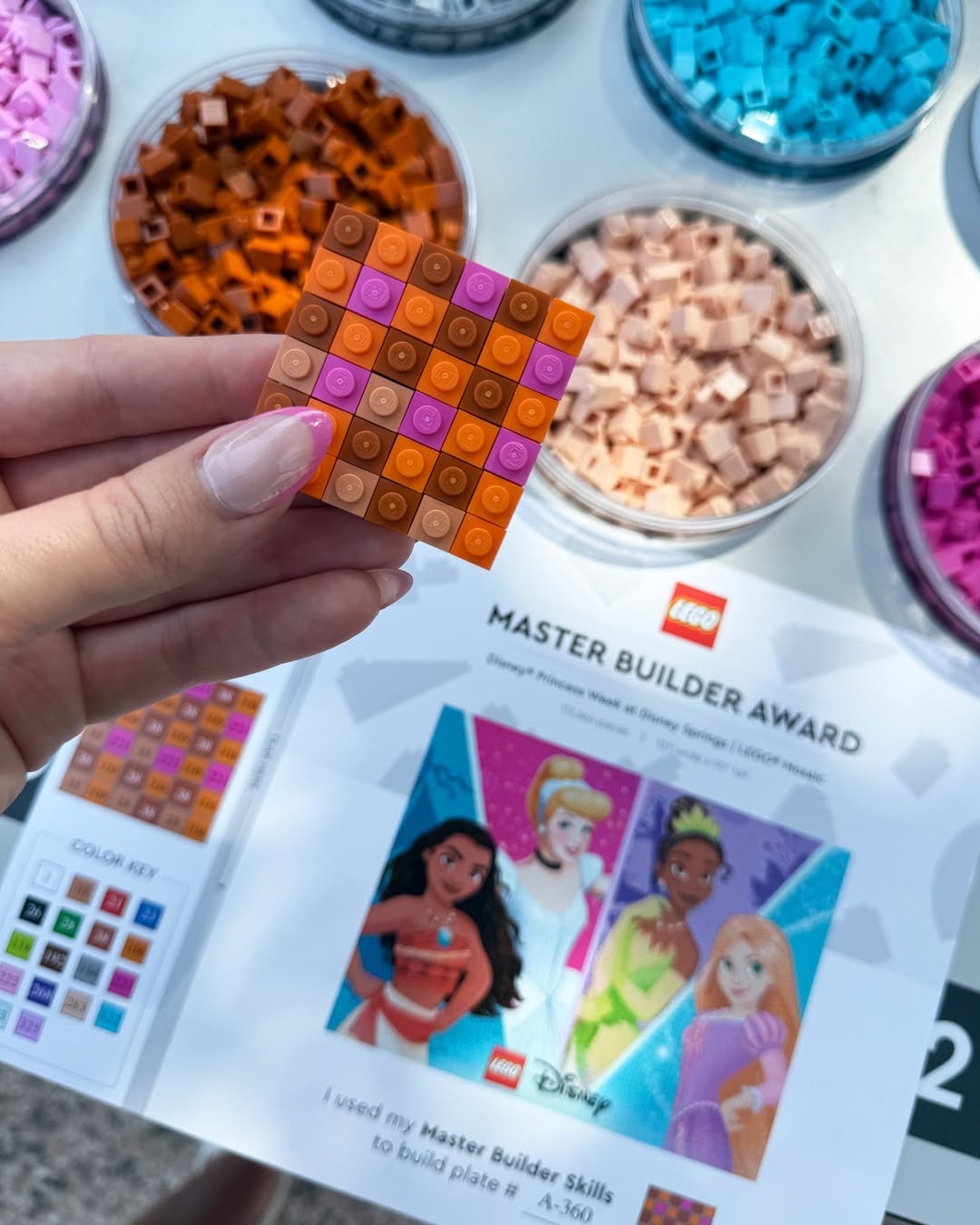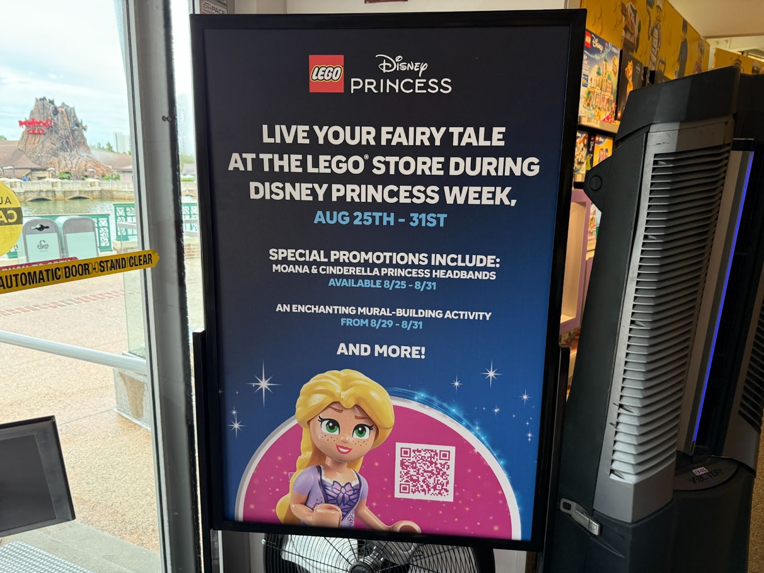 - Disney’s World Princess Week is taking place all this week, and in celebration the Disney Springs LEGO Store is hosting some fun activities and giveaways. LEGO brick-built portraits of famous Disney Princesses like Moana, Ariel, Tiana, and Cinderella are on display in the store.