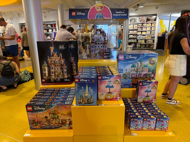 - The Disney Princess LEGO sets featured in the display above include the Beauty and the Beast Castle, Moana 2 Kakamora Barge, Mini Disney Castle, Cinderella’s Dress, Princess Castle & Royal Pets, and Twirling Ariel.