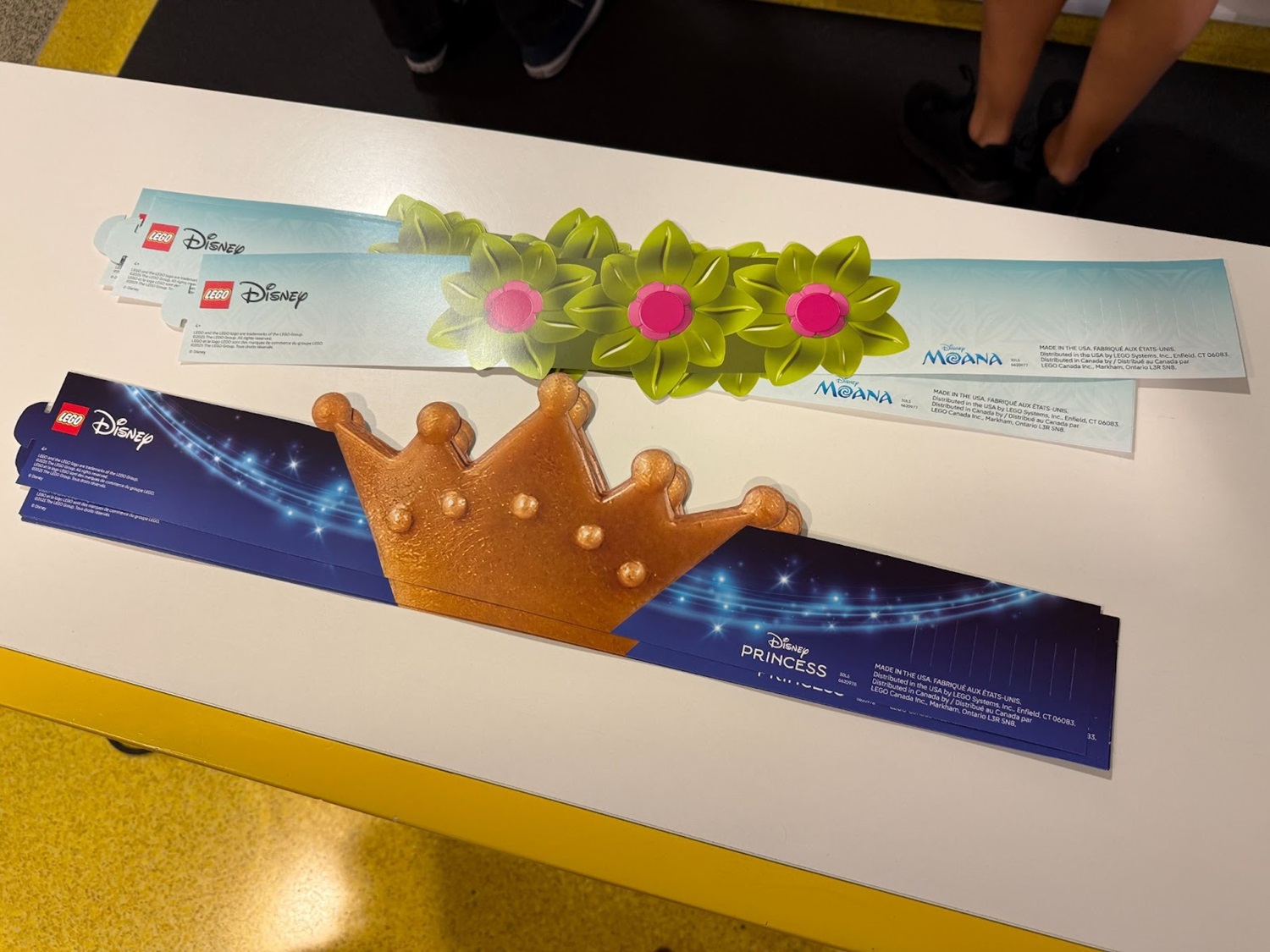 - In the photos below, you can see how the LEGO Store is giving away Disney Princess-themed headbands (the two pictured here look like Aurora and Moana’s respective crowns) from now through Sunday, August 31st.