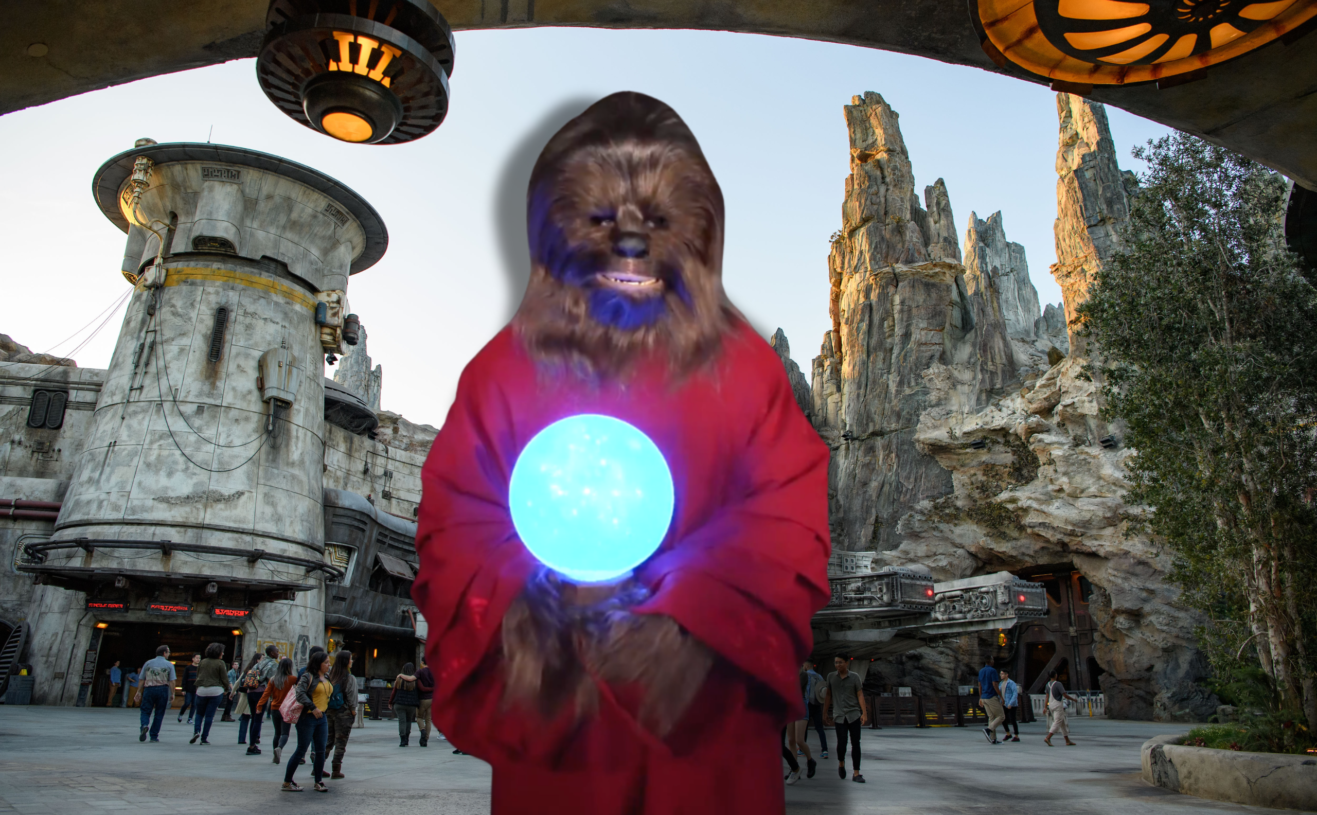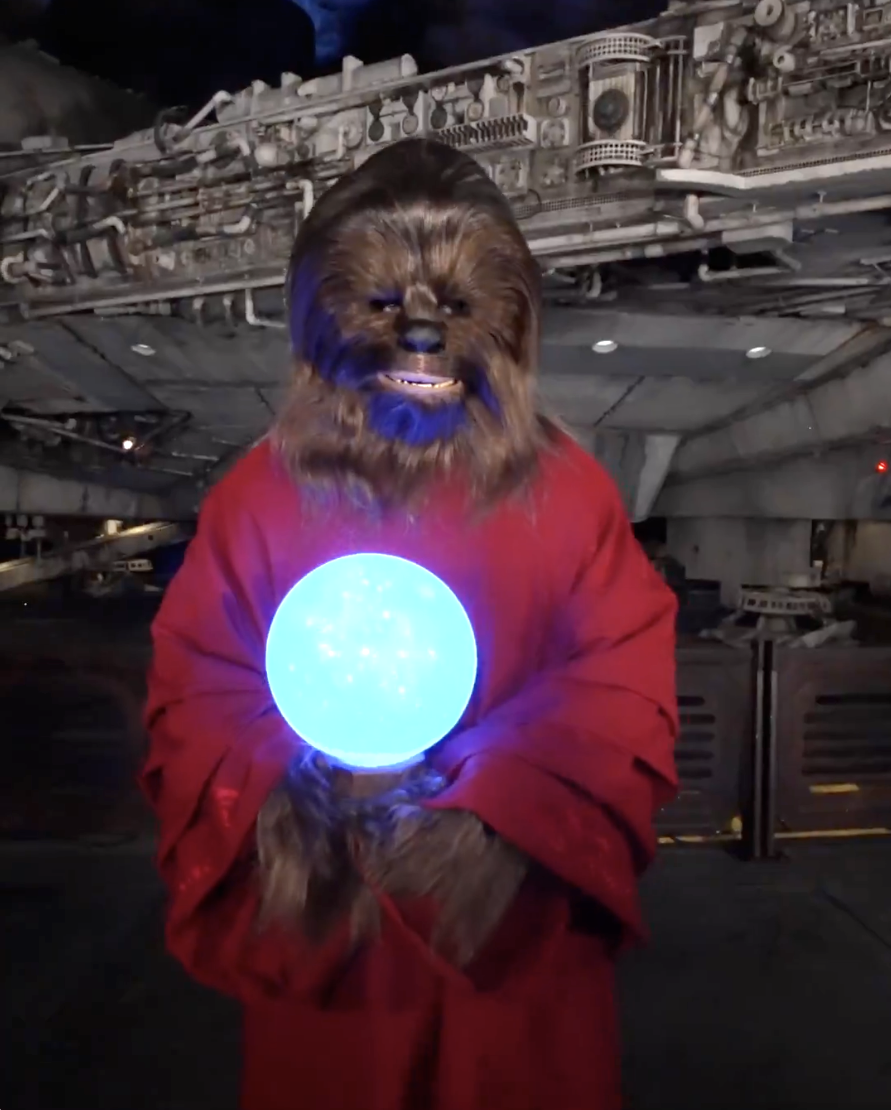 - Chewbacca will be appearing in his red cloak, complete with a "Life Day Orb," in Star Wars: Galaxy's Edge at both Disneyland and Disney's Hollywood Studios.