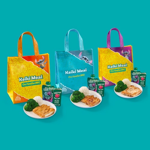 - Starting May 14th, guests who purchase an Ono Keiki Meal will receive one of three collectible Stitch lunch bags. The Ono Keiki Meal comes with a choice of made-to-order protein, a scoop of rice, steamed vegetables, a Tree Top 100% Apple Juice Box and a Tree Top Triple Berry Apple Sauce Pouch.