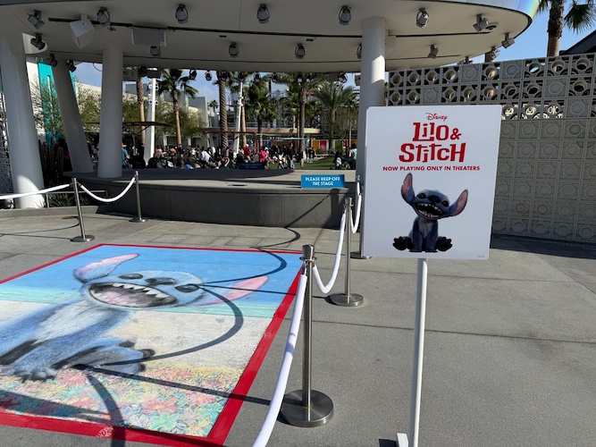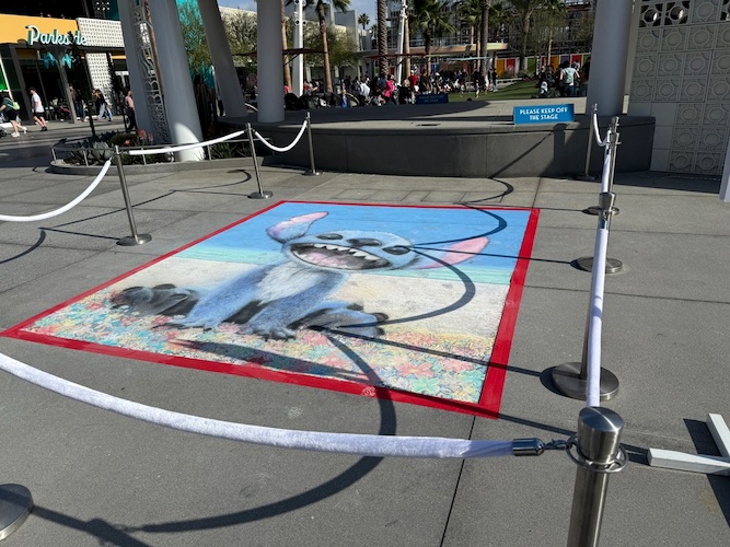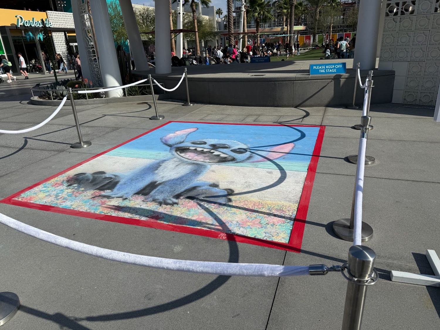 The live-action adaptation of Lilo & Stitch arrived in theaters over the weekend, and Downtown Disney at the Disneyland Resort is getting guests excited for the film with a chalk painting, located on the floor right in front of the Downtown Disney LIVE! Stage.