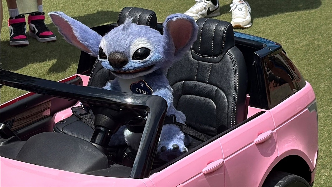 Elsewhere in Anaheim, Stitch also took over D23 Day at Angel Stadium over the weekend, greeting fans in his pink ride-on car, alongside a small exhibit showcasing props from the live-action film.