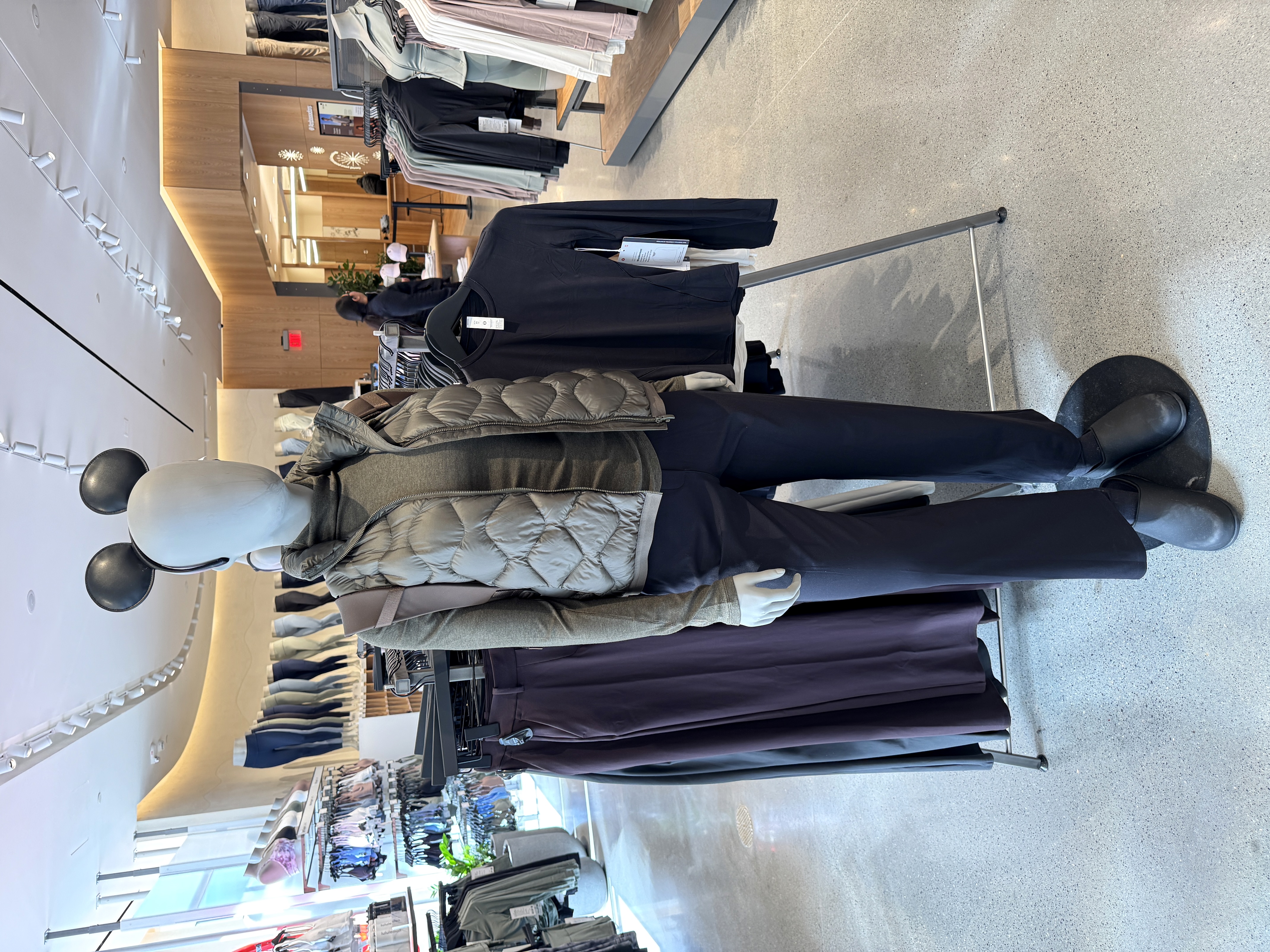Comfort lovers will immediately be drawn to this impressive wall of leggings and sweatpants.