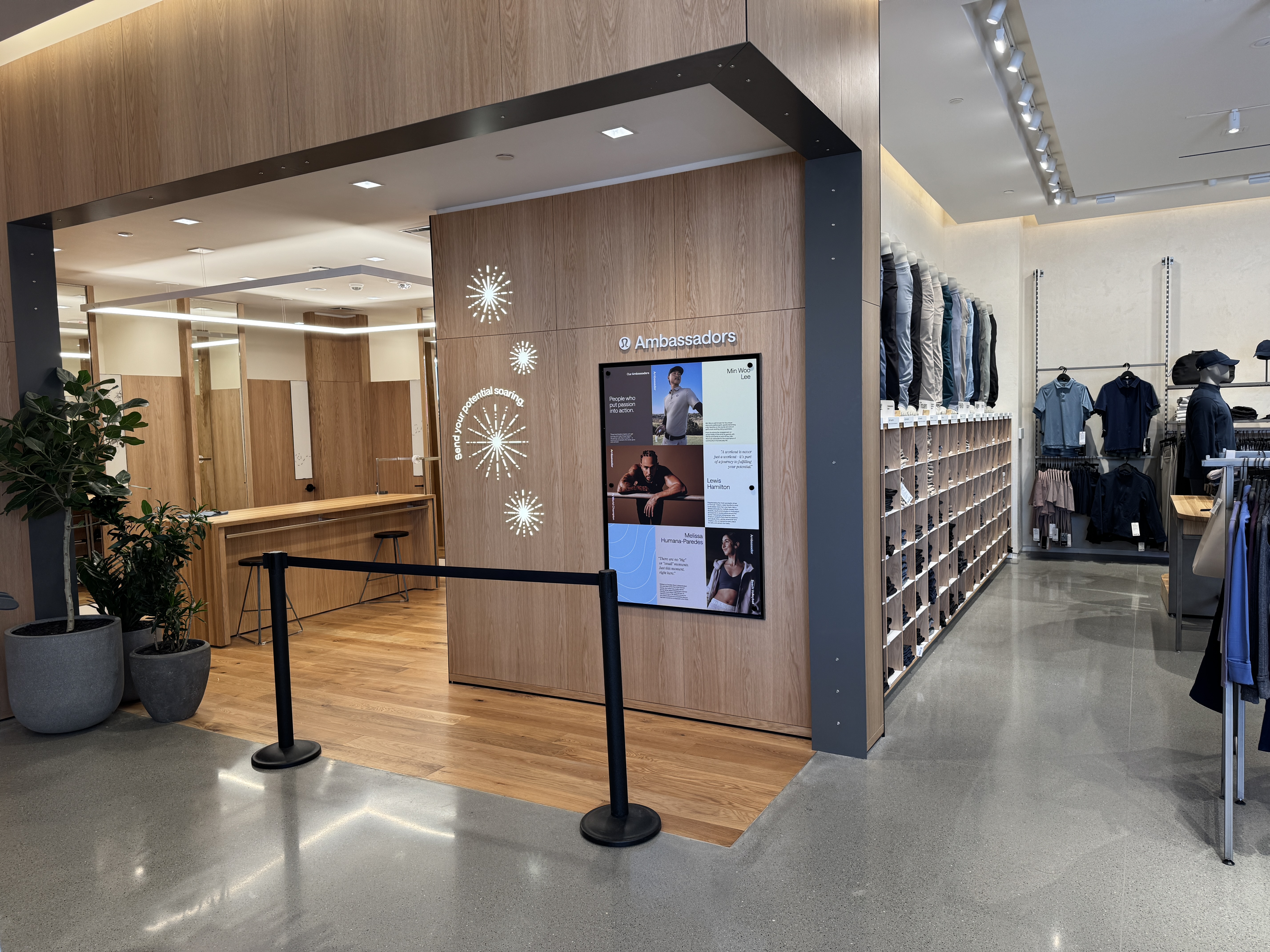 A spotlight on lululemon Ambassadors is found over by the changing rooms.