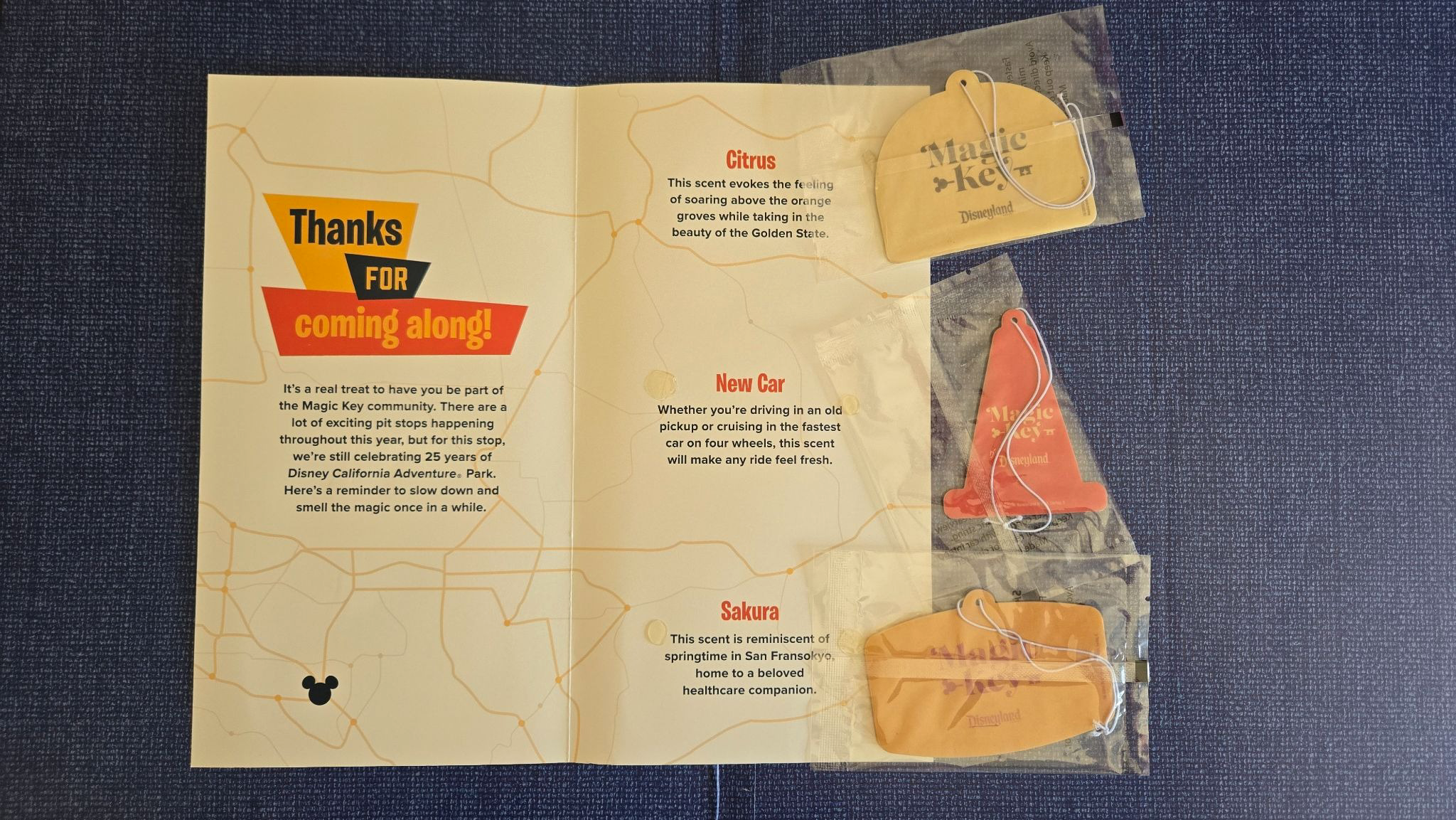 - A new Magic Key Road Trip 2026 mailer is on the way exclusively for passholders at the Disneyland Resort, and it features a fun and practical gift: a set of Magic Key-exclusive car air fresheners inspired by attractions and experiences from Disney California Adventure Park.