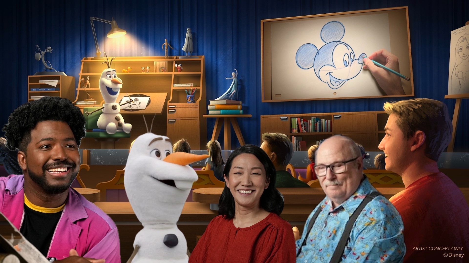 - The new experience, akin to the popular Animation Academy featured at various Disney Parks (and in this building’s former life), “Olaf Draws!” will take everyone’s favorite snowman and put him into Audio-Animatronic form, sitting at an animator’s desk like he does in the acclaimed short, Once Upon A Studio.