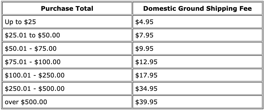 - Shipping fees for the collection are as follows: