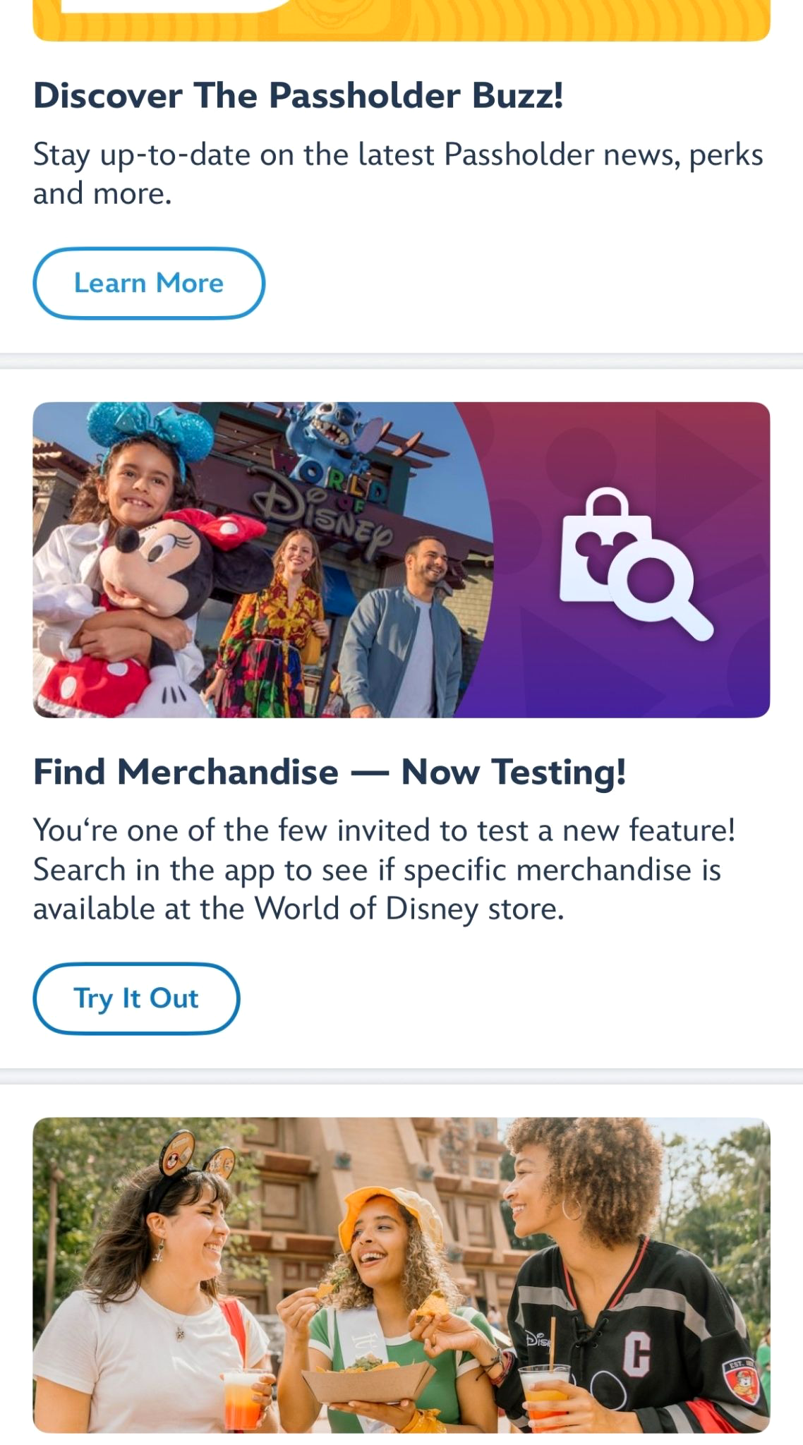 A new test has appeared on some users' My Disney Experience app, allowing guests to explore different merchandise items and (eventually) where they can be found throughout the Walt Disney World Resort.