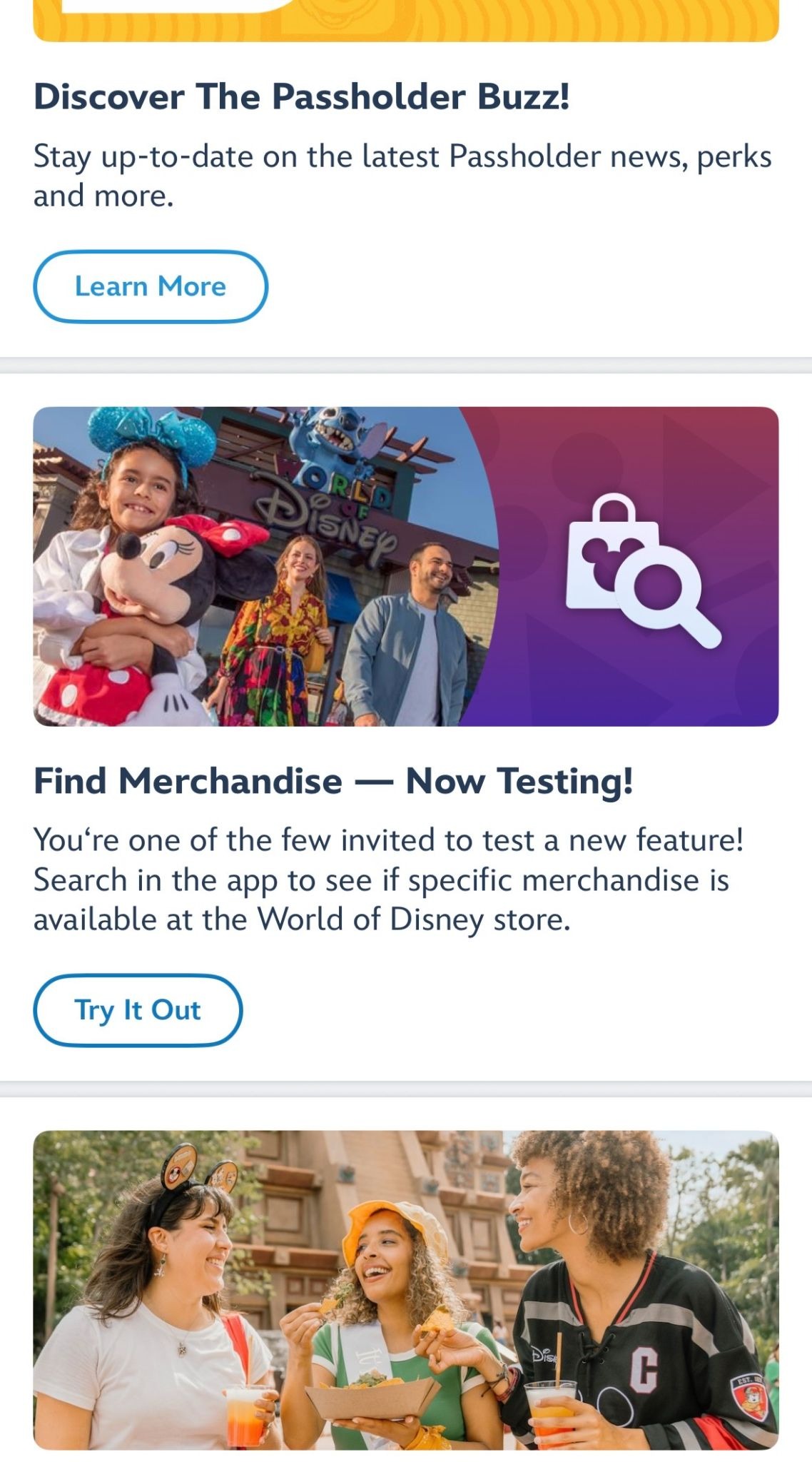 A new test has appeared on some users' My Disney Experience app, allowing guests to explore different merchandise items and (eventually) where they can be found throughout the Walt Disney World Resort.