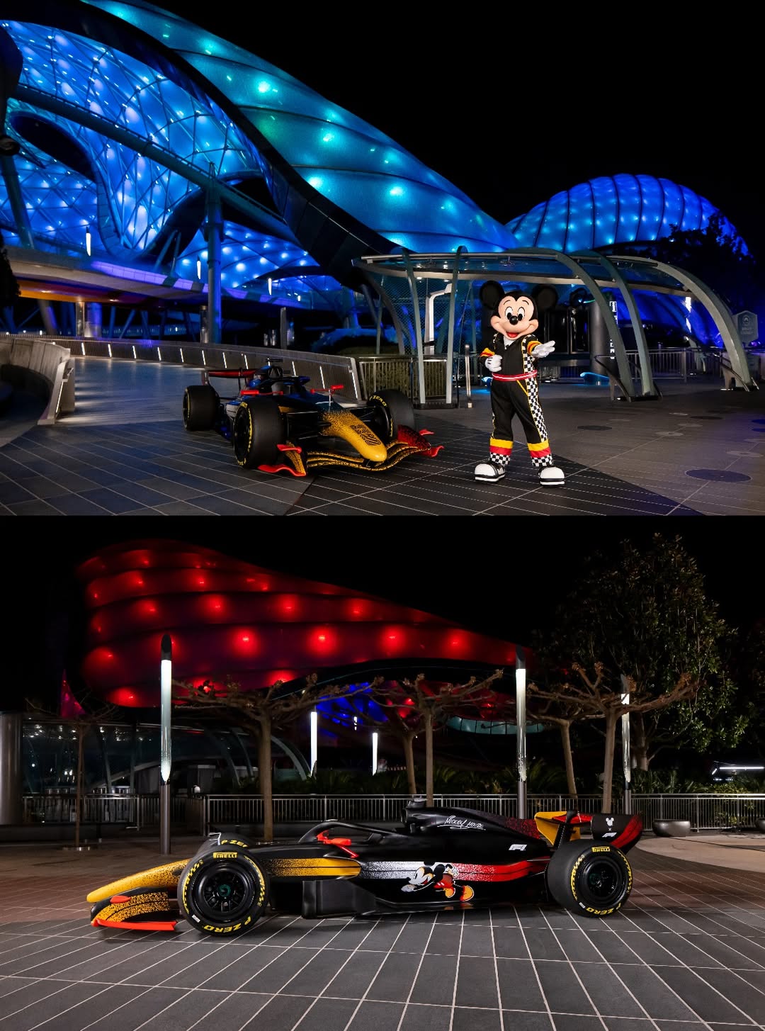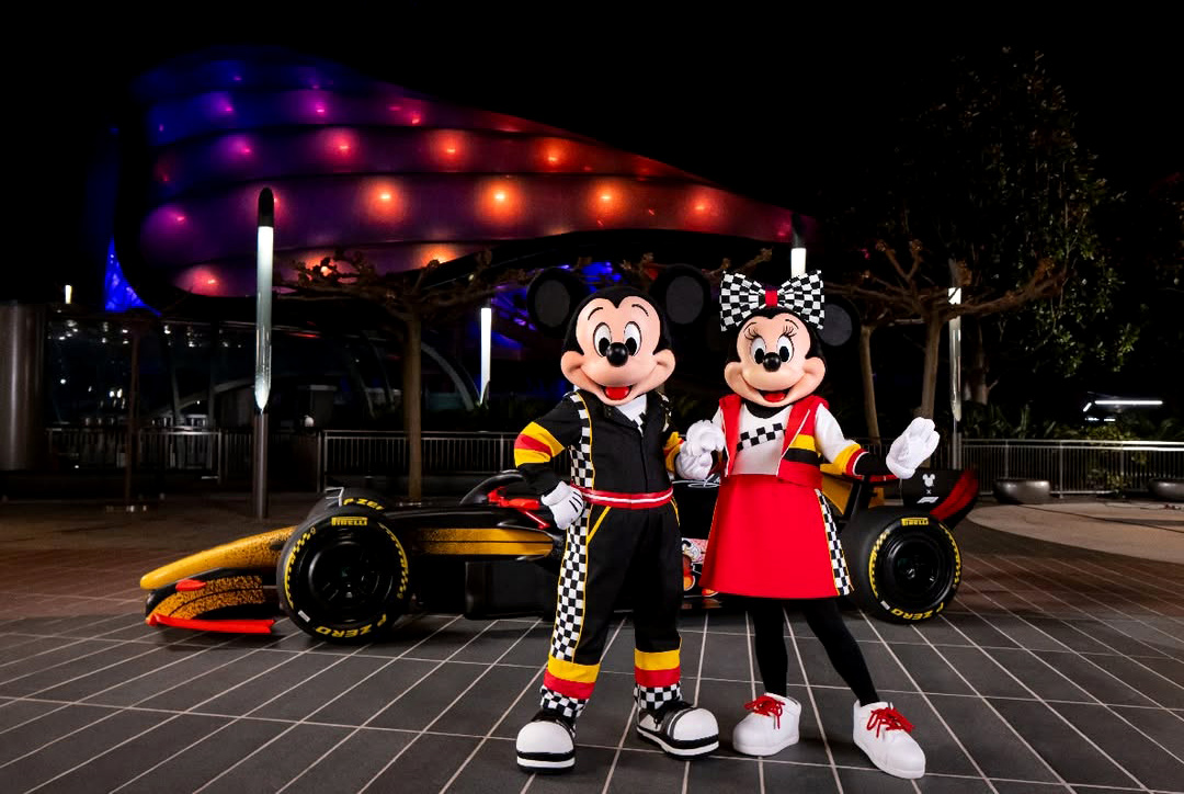 - At the park's Main Entrance portal, guests can spot Mickey and Minnie in new F1-inspired racing looks.