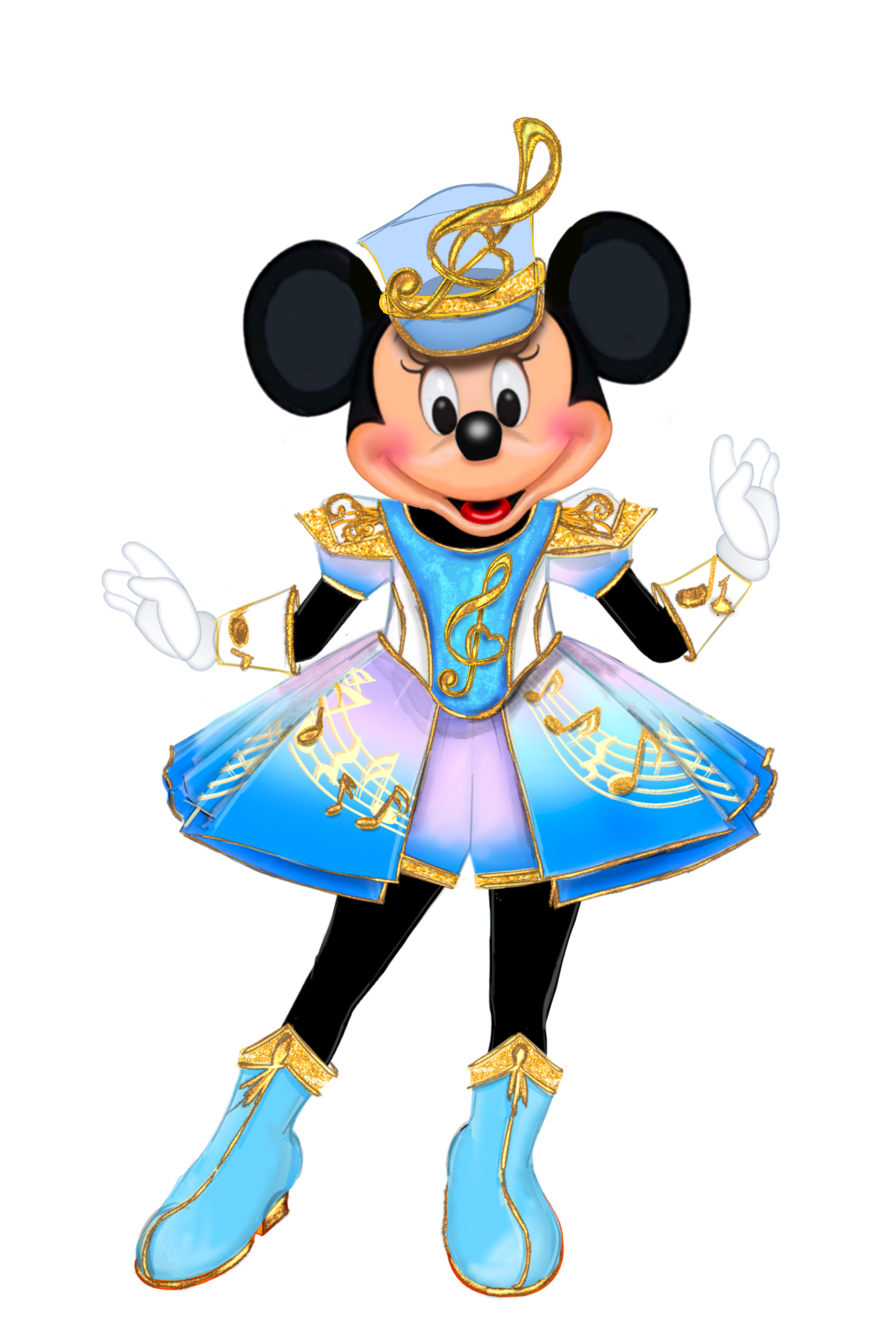 - A second new costume for Minnie Mouse, seen in the image below, was designed for Disney Marching Band performances along Adventure Way. During those shows, Minnie will lead a dozens musicians as they perform fan-favorite Disney and Pixar tunes.
