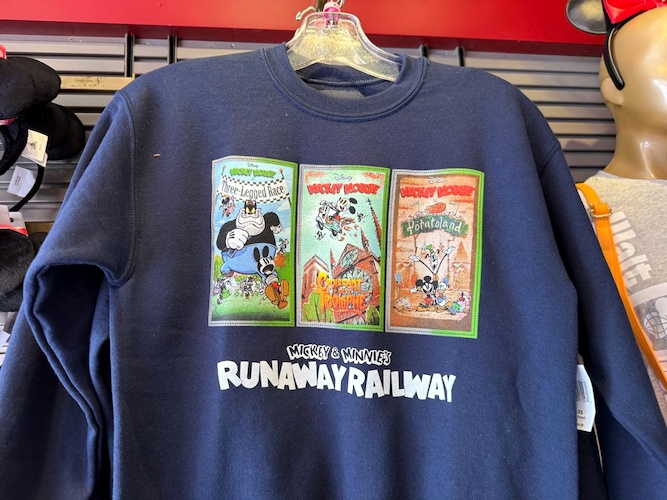 Having just shared some new apparel offerings for Rock ‘n’ Roller Coaster that made their debut at Walt Disney World this summer, let’s also take a look at some similarly fresh merchandise for Mickey & Minnie’s Runaway Railway.