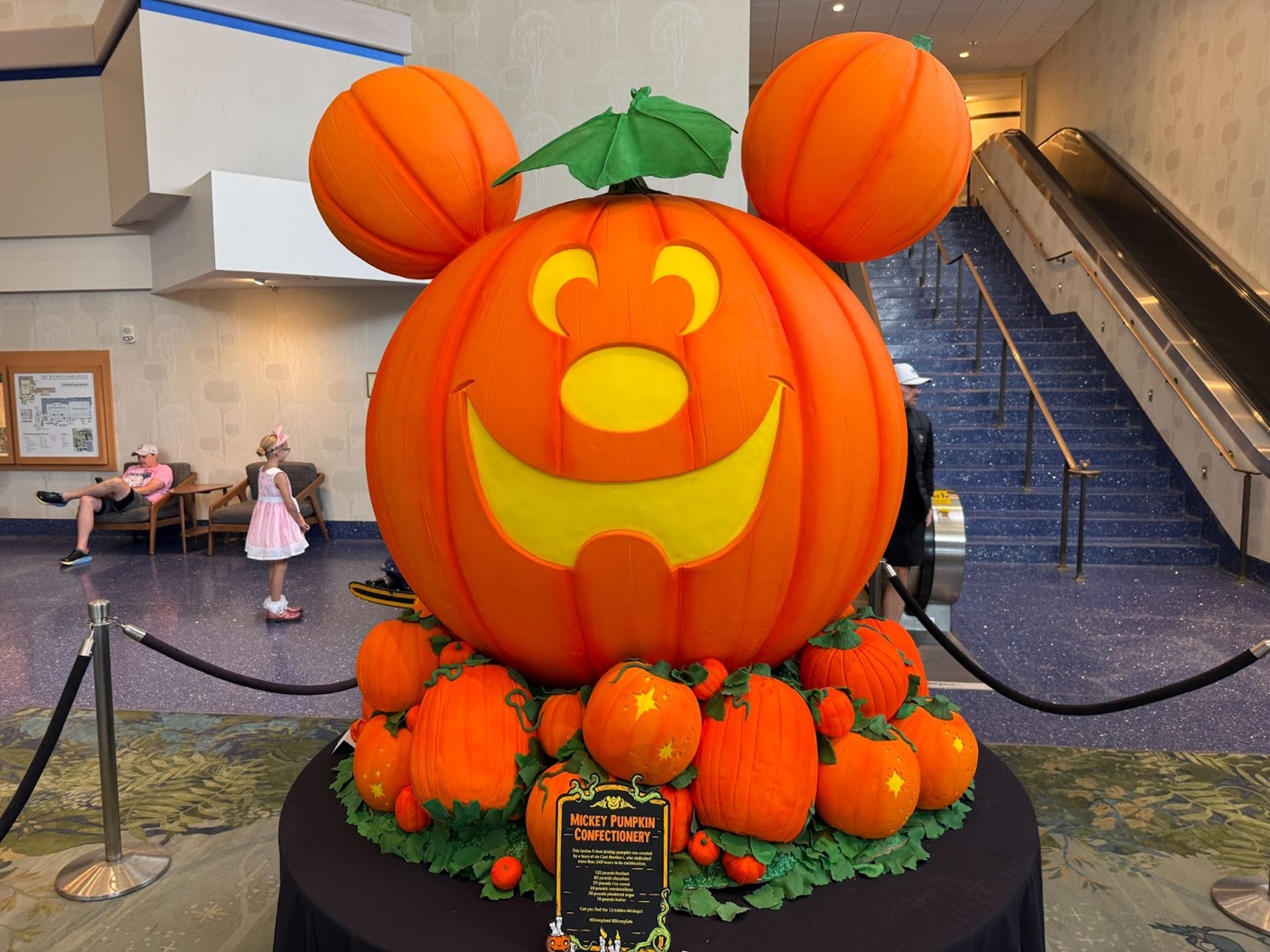 Giant Mickey Mouse Pumpkin Confectionery Appears In Lobby of Disneyland Hotel for Halloween Time