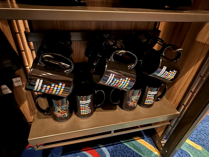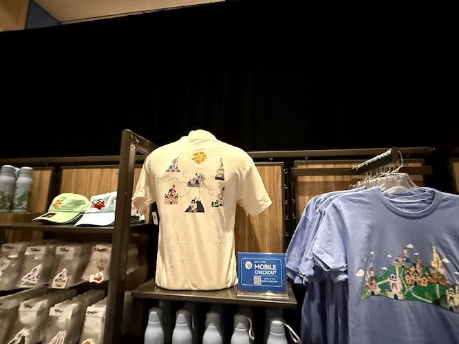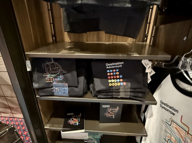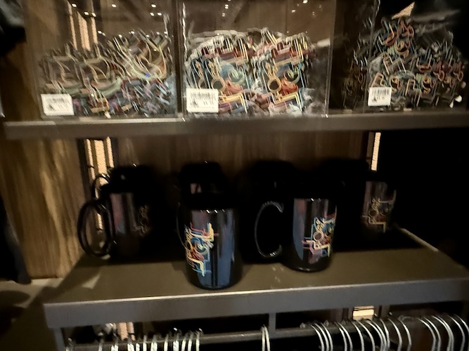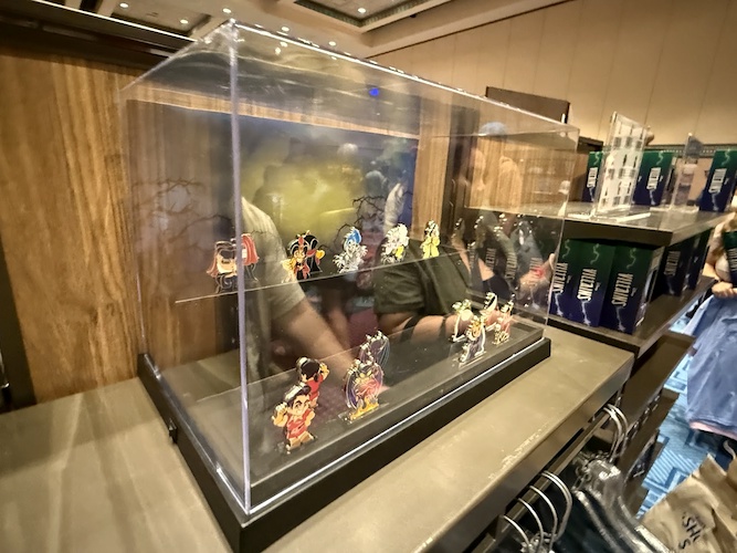 Another area of the store is dedicated to merchandise celebrating the Haunted Mansion Parlor aboard the Disney Cruise Line. This lounge can be found on the Disney Treasure and the upcoming Disney Destiny, but this is the largest collection of Parlor logo merch we’ve seen yet.