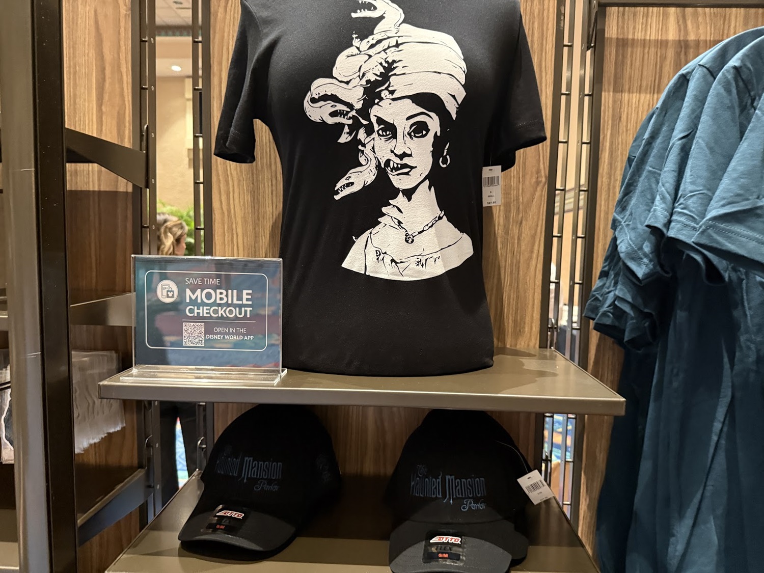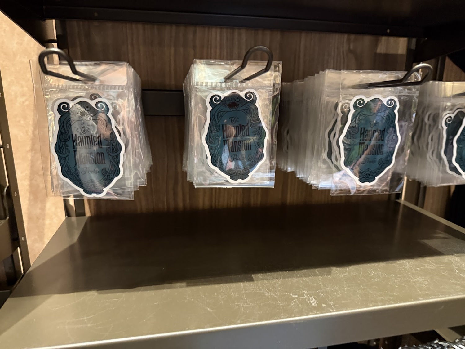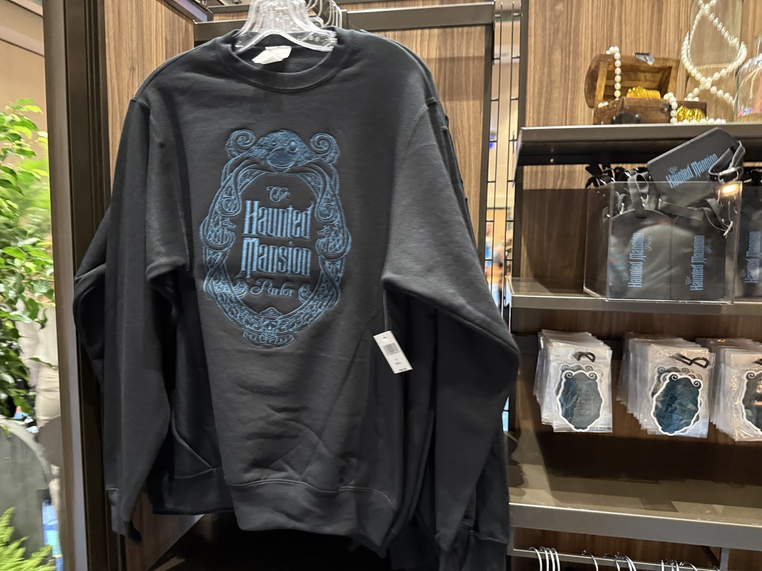 Another area of the store is dedicated to merchandise celebrating the Haunted Mansion Parlor aboard the Disney Cruise Line. This lounge can be found on the Disney Treasure and the upcoming Disney Destiny, but this is the largest collection of Parlor logo merch we’ve seen yet.