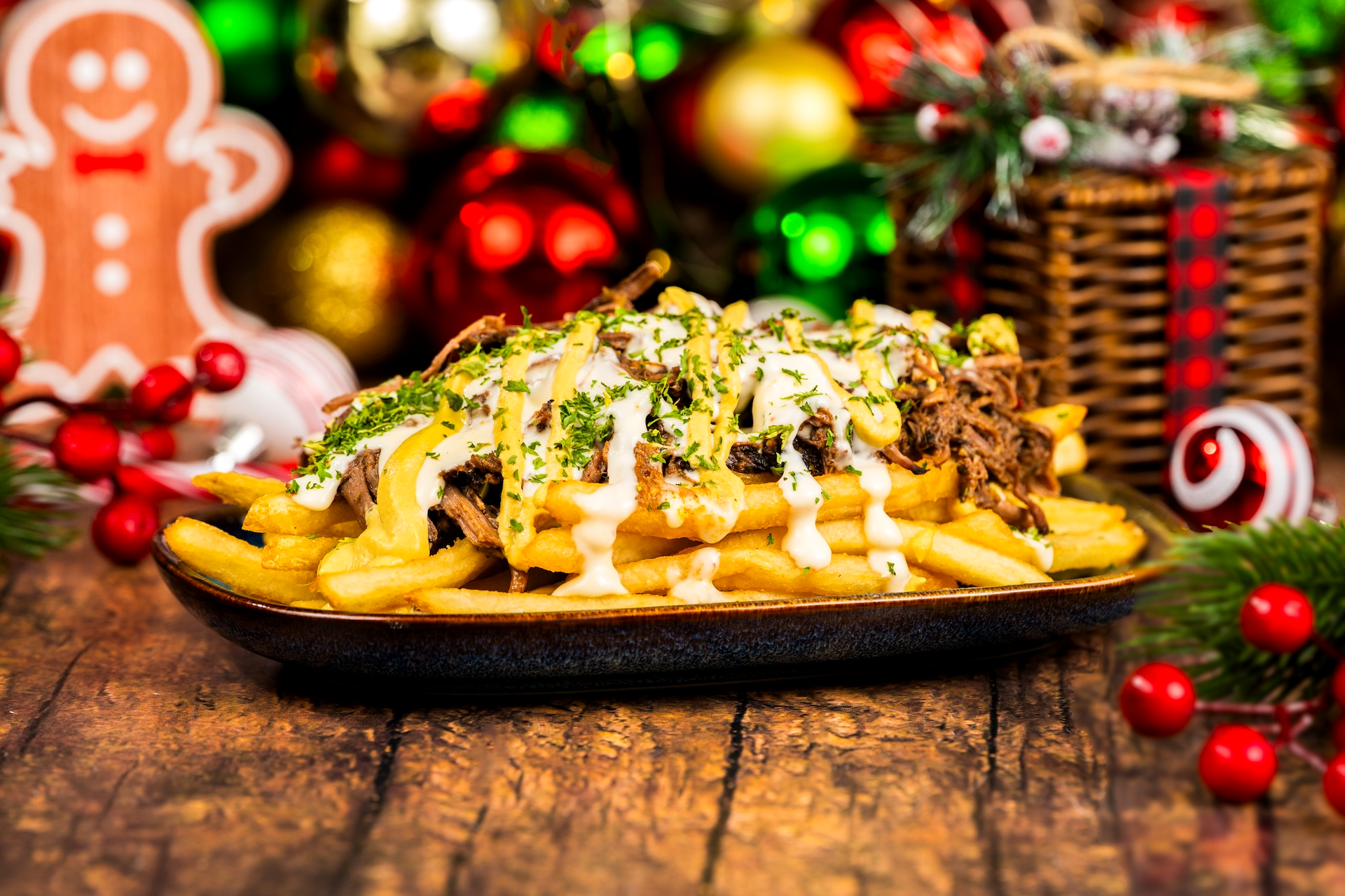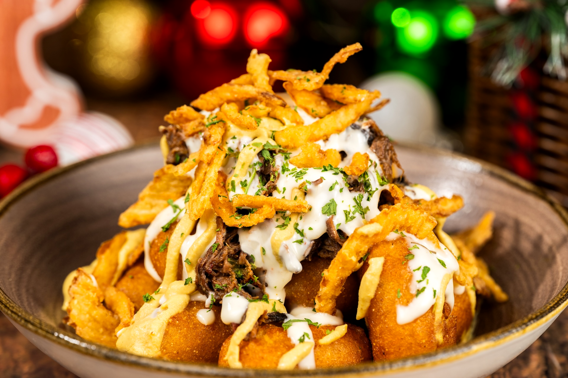 - Holiday Pot Roast Loaded French Fries topped with pot roast, beer-cheese sauce, crispy onions, and horseradish mustard (Available during Mickey’s Very Merry Christmas Party only) (New)