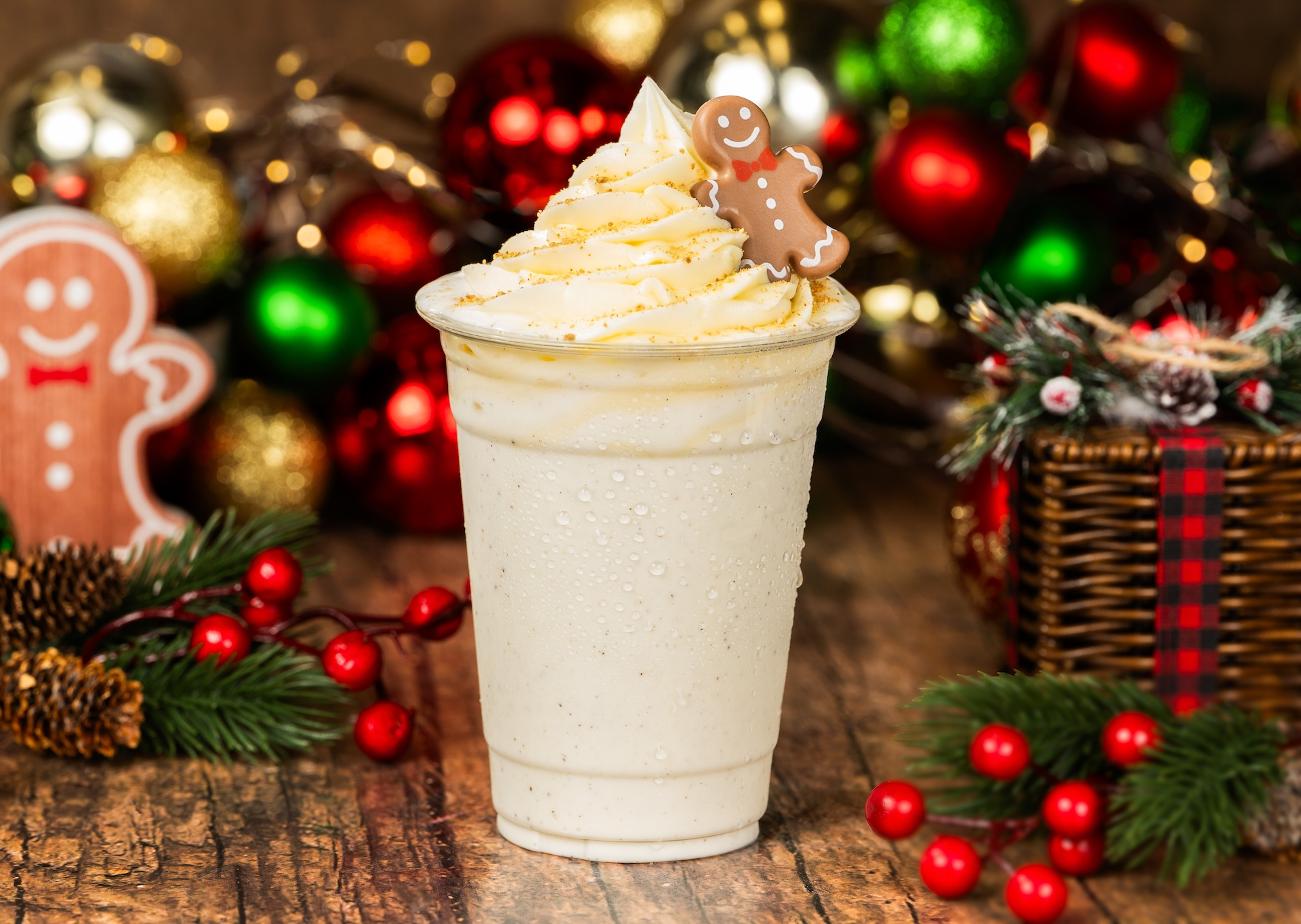 - Gingerbread Milk Shake: Vanilla ice cream, gingerbread syrup, and ginger snap crumbs topped with whipped cream and a chocolate gingerbread man (Non-alcoholic) (Available during Mickey’s Very Merry Christmas Party and regular park hours)