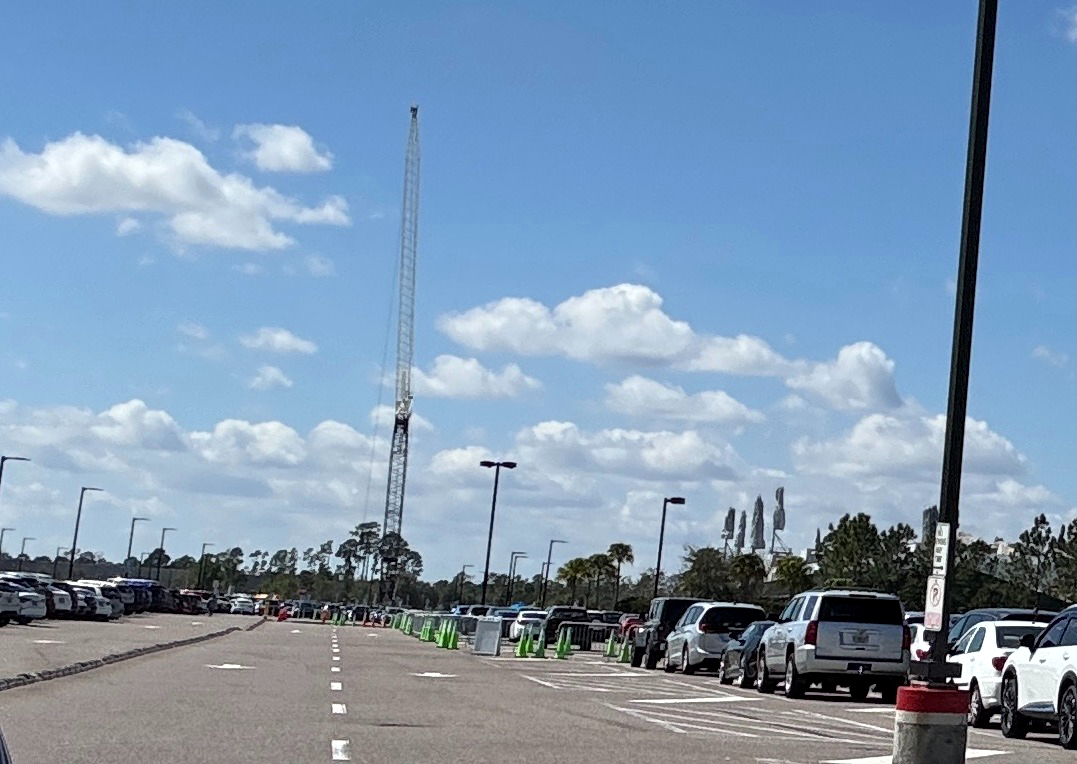 - While the building hasn’t begun to rise just yet, a massive crane can now be seen, hinting that the attraction’s showbuilding will soon go vertical.