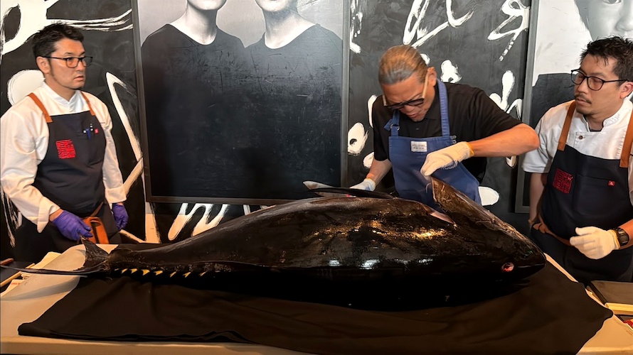 Morimoto Asia is located in The Landing section of Disney Springs. At this special event, guests were able to enjoy Instagram-worthy meet-and-greets, sample Chef Morimoto’s renowned sake, and indulge in Morimoto Asia’s signature dishes. The event started with a bluefin tuna carving ceremony led by Iron Chef Masaharu Morimoto himself.