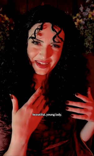 - Mother Gothel appears in a short video shared across Disney’s social media accounts, enticing viewers to look into the mirror and see a beautiful young lady, of course, referring to herself.