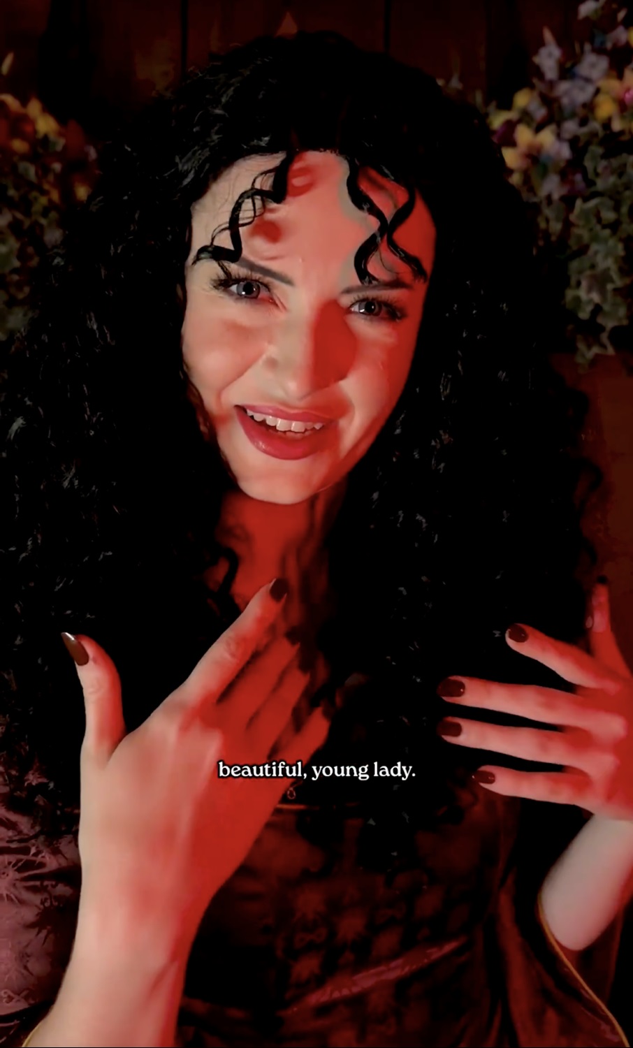 - Mother Gothel appears in a short video shared across Disney’s social media accounts, enticing viewers to look into the mirror and see a beautiful young lady, of course, referring to herself.
