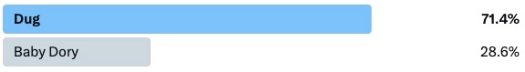Before we get into our next matchup, let’s take a look at the last result. In another one-sided contest, Dug defeated Baby Dory to take a spot in the Elite 8. The lovable talking dog now moves on to face Boo, the top seed in the Pixar region. It will be interesting to see how the vote goes in that one.