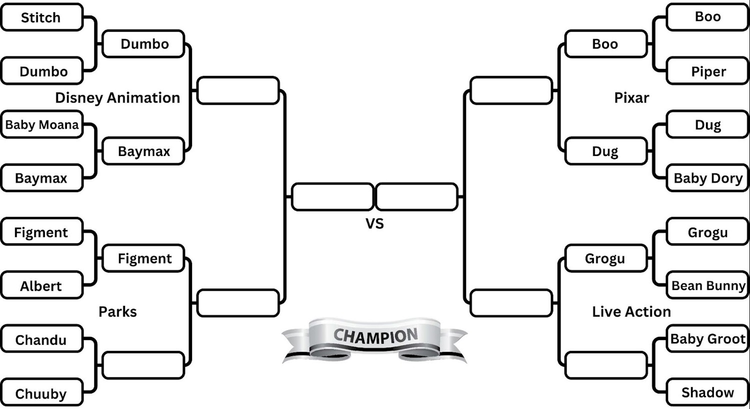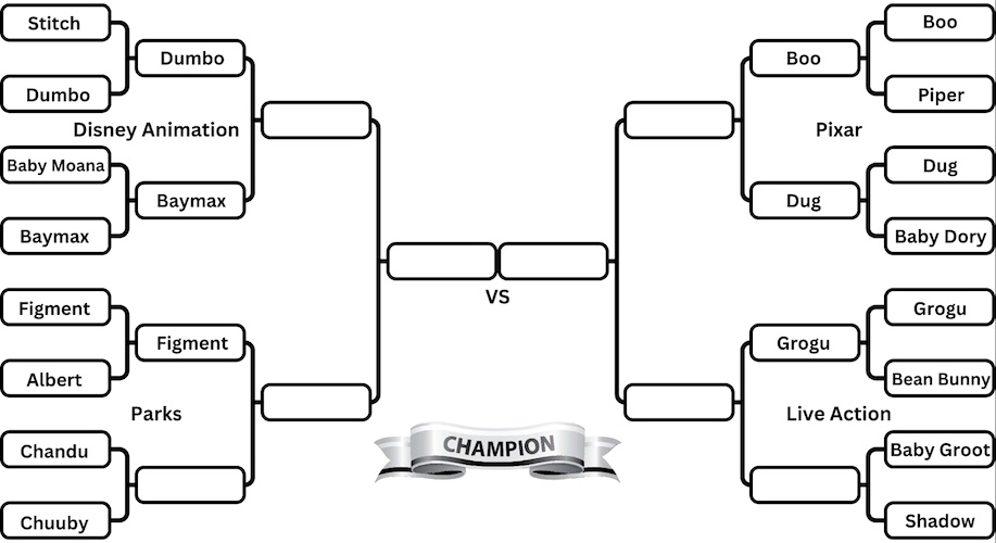 Welcome to the opening round of our 11th annual Mouse Madness tournament! This year, we are attempting to crown the cutest Disney character. We have created a bracket of 16 of the most adorable Disney characters in four different regions and now, one by one, we will narrow them down until we determine who is the cutest.