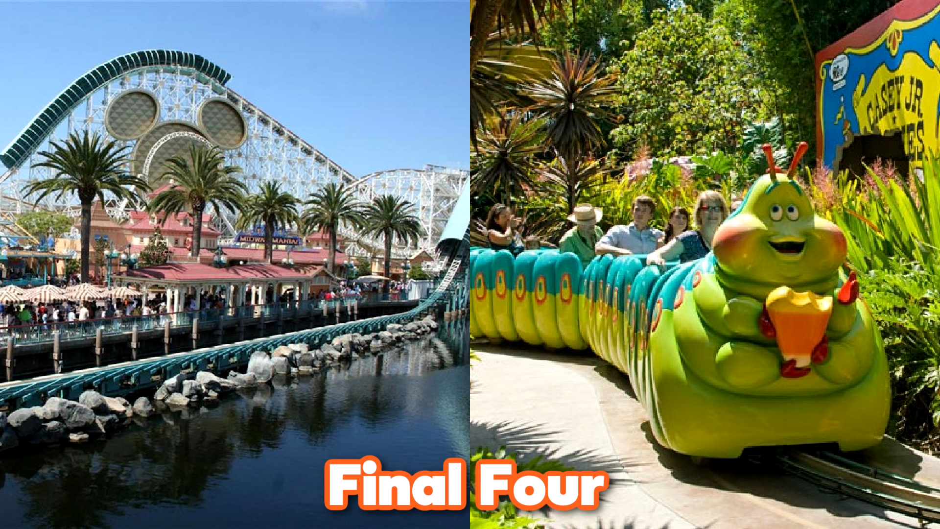 Speaking of the Final Four, today, we kick off that round with a matchup between two former DCA rides. From the Rethemed Region, we have California Screamin'. And from the Gone Gone Region, it's Heimlich's Chew Chew Train.