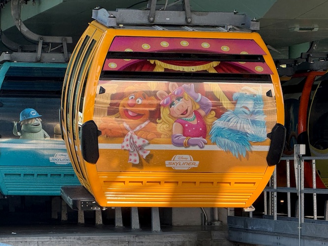 - The Disney Skyliner at Walt Disney World is celebrating the Muppets by adorning a few of its gondolas with special decals for their 70th anniversary.