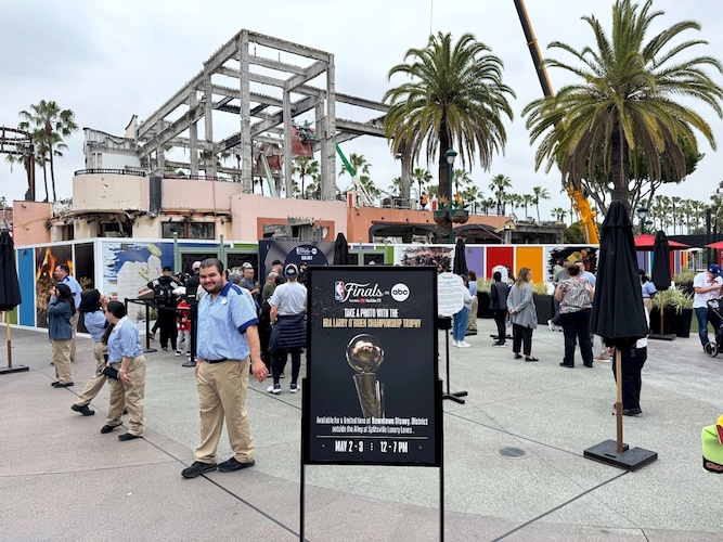 As was previously done with the NHL Stanley Cup Trophy, lucky Downtown Disney guests can pose for a photo with the NBA Larry O’Brien Championship Trophy, in promotion of the NBA Final – which kick off June 5th on ABC.