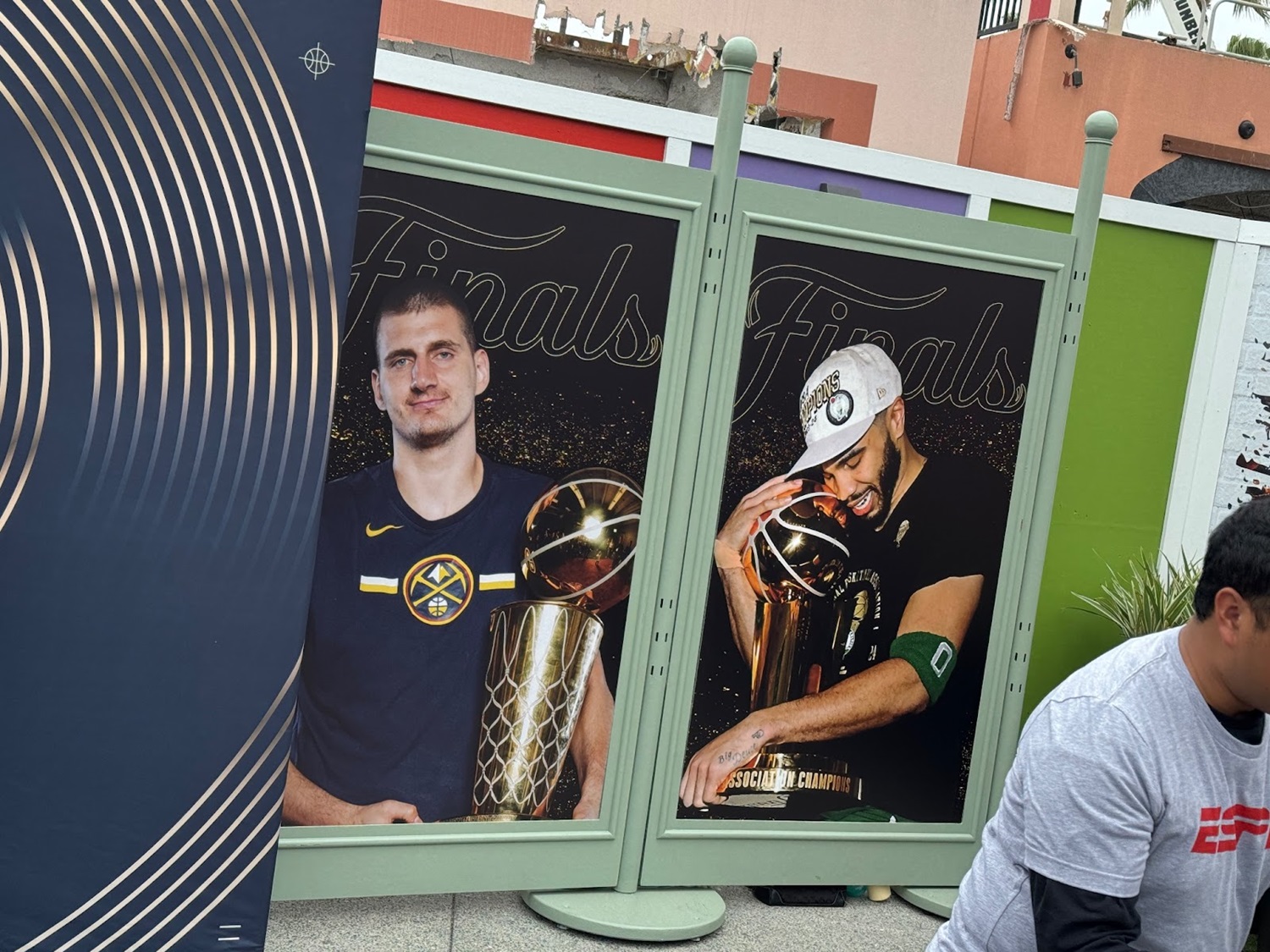 The area is decorated with some photos of NBA players holding the trophy.