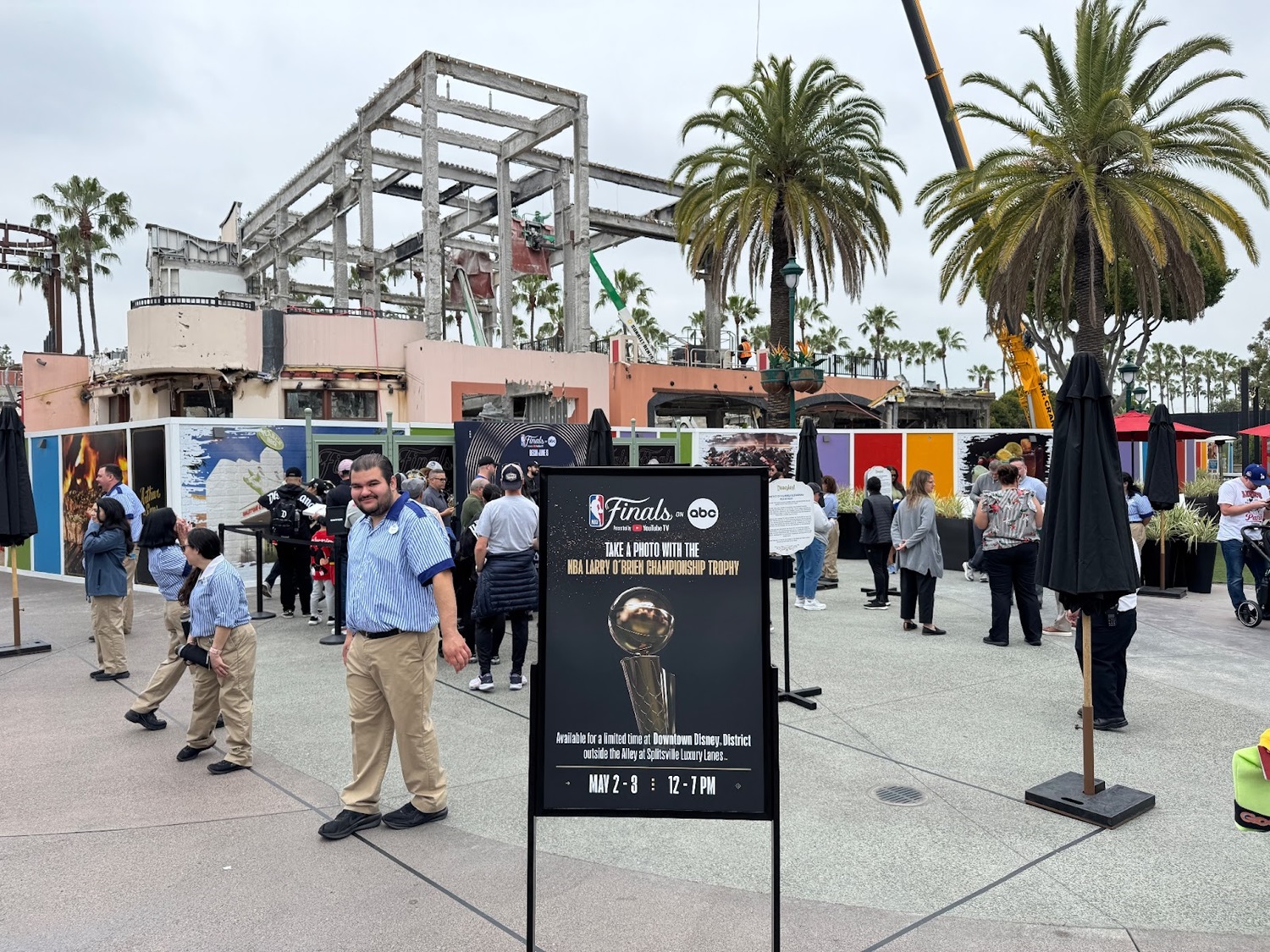 Visitors to the Downtown Disney District this weekend can take a photo with the NBA Larry O’Brien Championship Trophy, in front of the beautiful backdrop of Tortilla Jo’s being demolished.