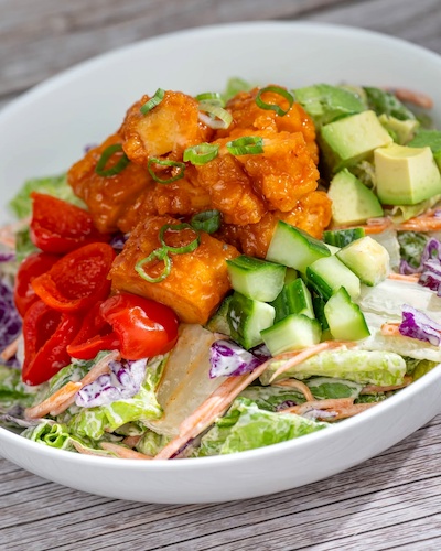 - NEW! Hot Honey Buffalo Chicken Chef Salad at Rosie's All-American Café: Hot honey buffalo chicken, romaine lettuce, carrots, red cabbage, celery, cucumber, avocado, peppadew peppers, and green onion with sriracha-ranch dressing