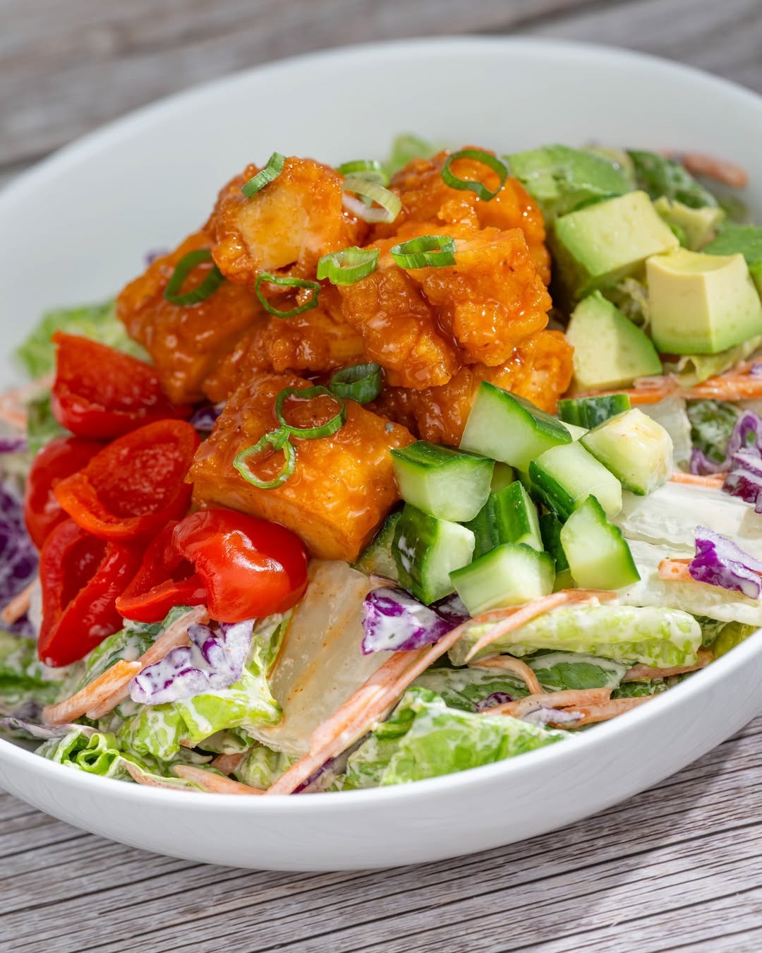 - NEW! Hot Honey Buffalo Chicken Chef Salad at Rosie's All-American Café: Hot honey buffalo chicken, romaine lettuce, carrots, red cabbage, celery, cucumber, avocado, peppadew peppers, and green onion with sriracha-ranch dressing