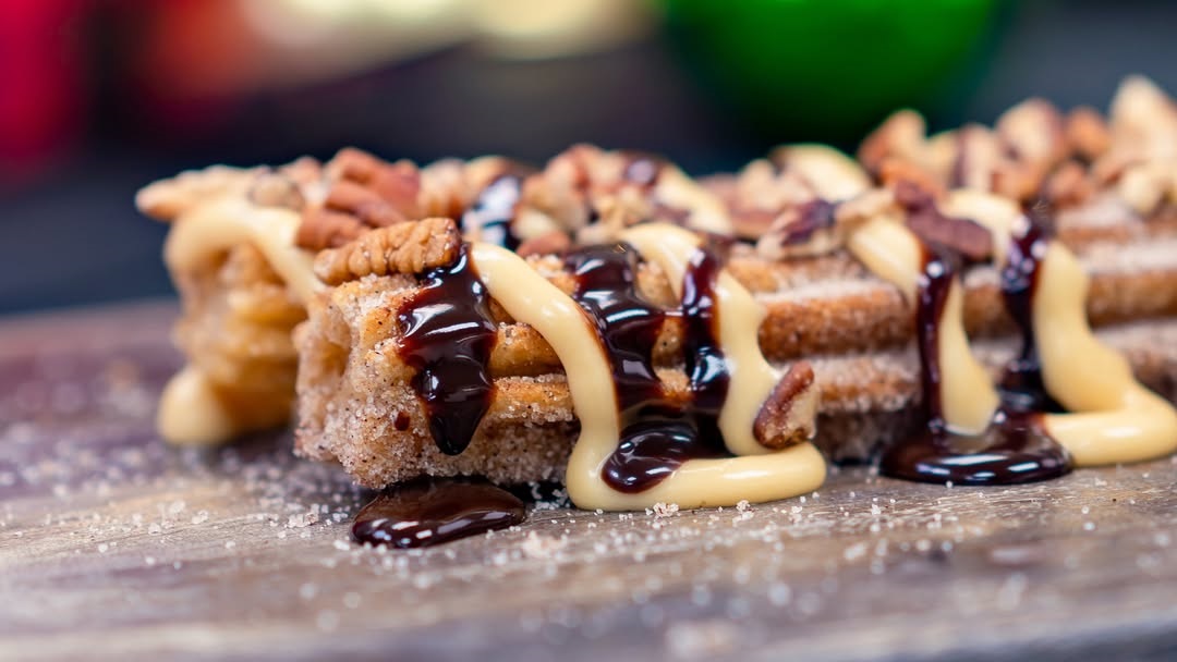 - Chocolate-Pecan Churro at Willie’s Churros at Buena Vista Street: Classic churro topped with maple glaze, toasted pecans, and chocolate drizzle
