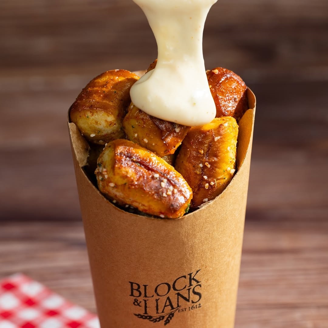 - Pretzel Nuggets with garlic butter, barbecue rub and beer-cheese sauce are available at Block & Hans as of today, April 9th.