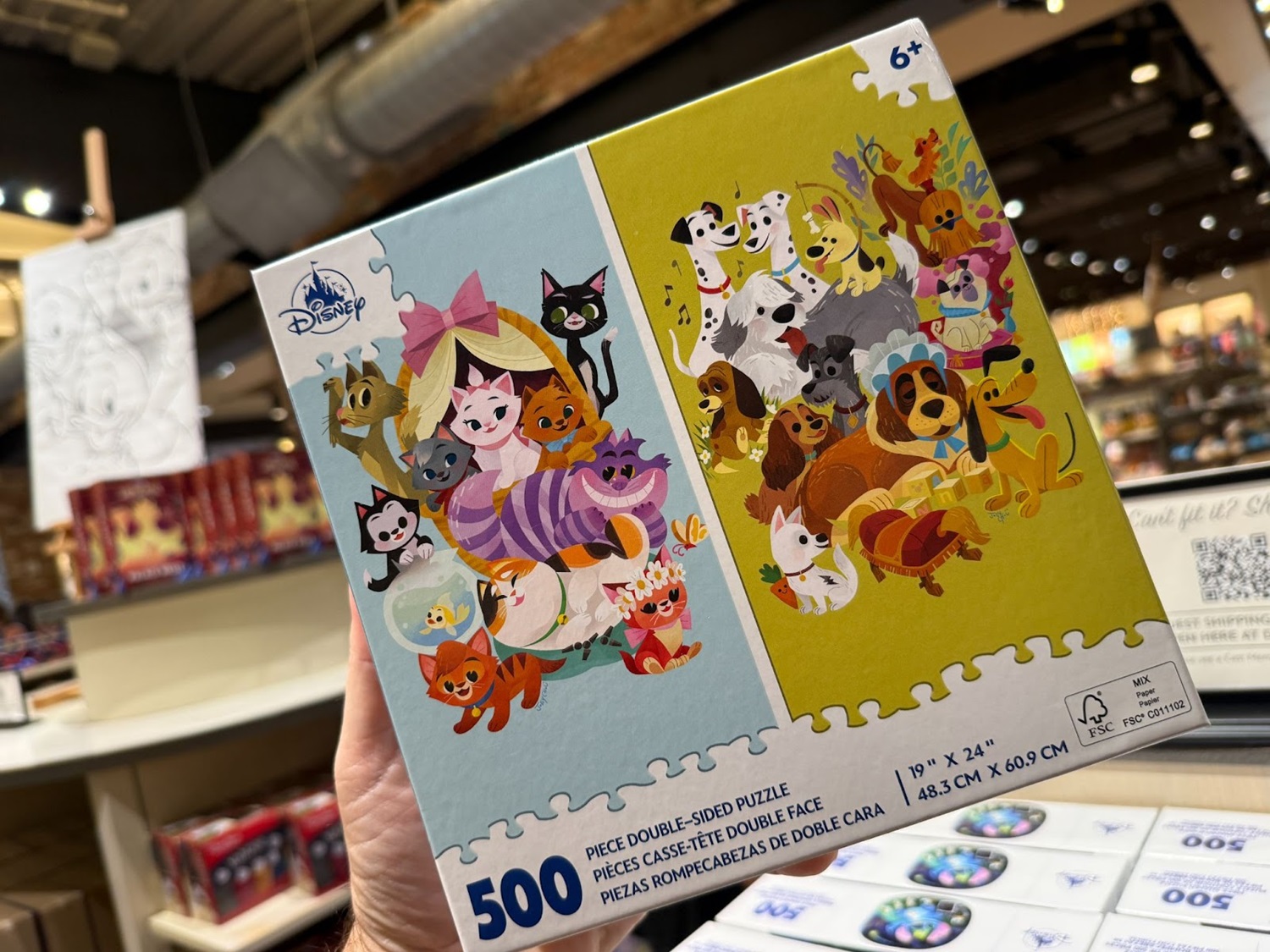 - Are you a dog or a cat person? Luckily, you don’t have to decide with this double-sided 500-piece puzzle featuring Disney cats on one side and Disney dogs on the other.
