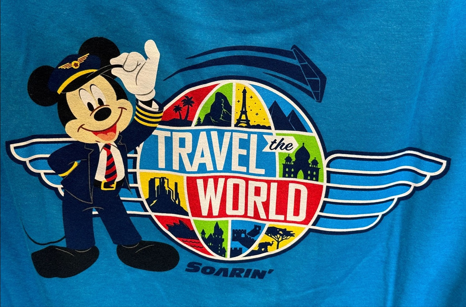 - Guests can also flaunt their love of Soarin’ with a new shirt available at Creations Shop, featuring the attraction’s logo on the front and a previously used “Travel the World" design featuring Pilot Mickey on the back.